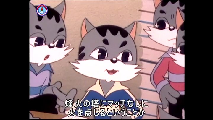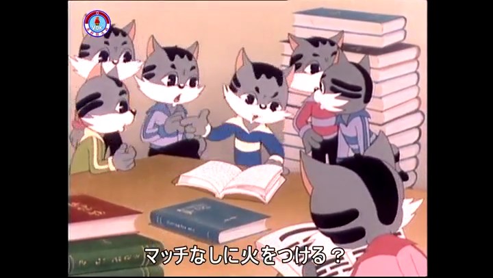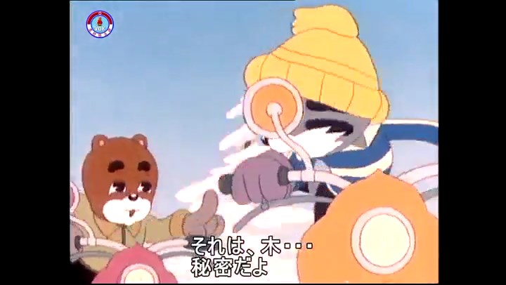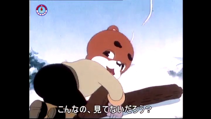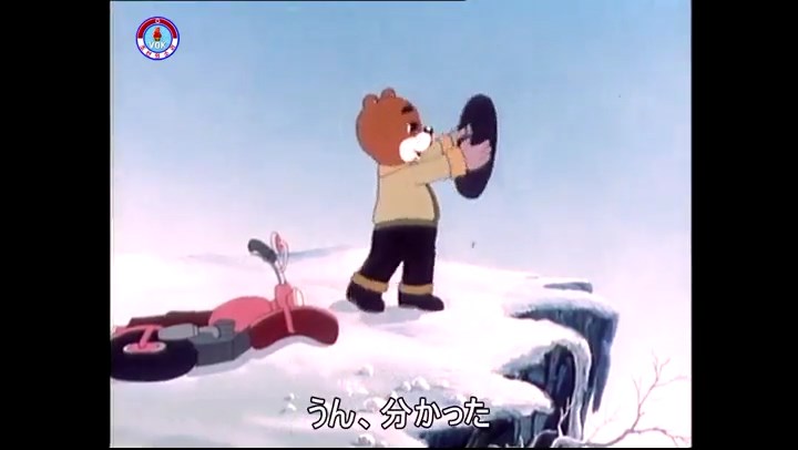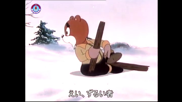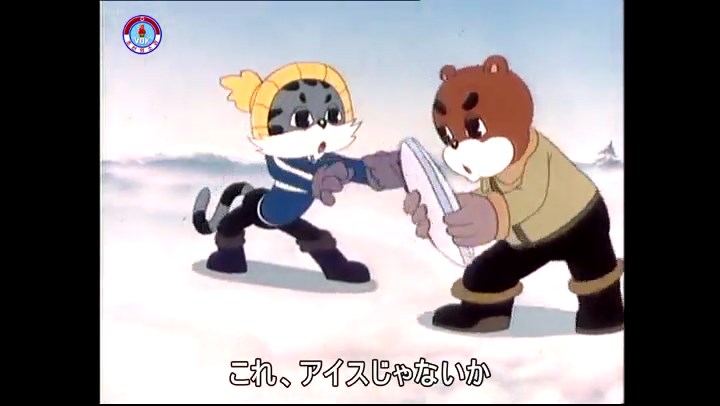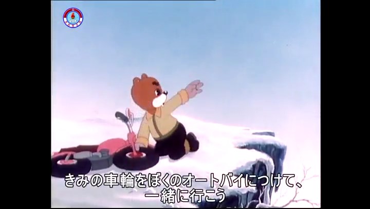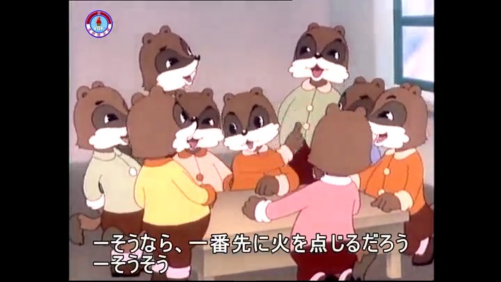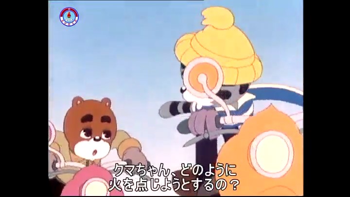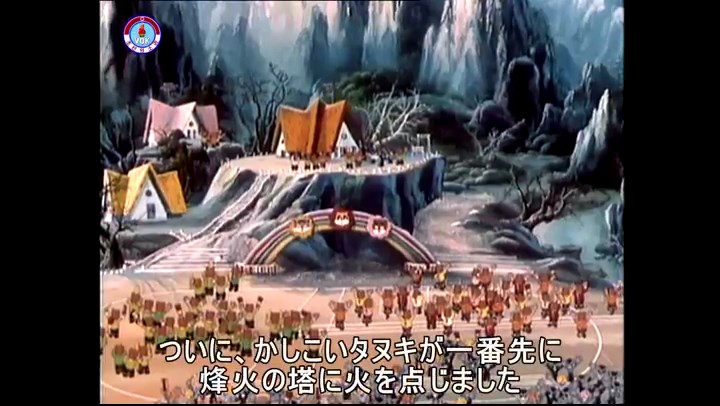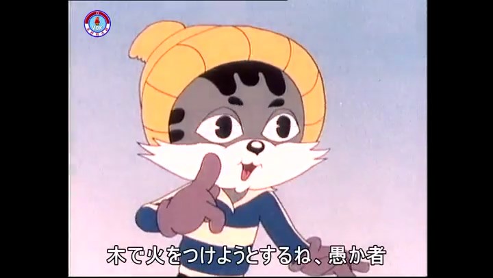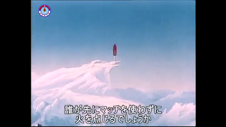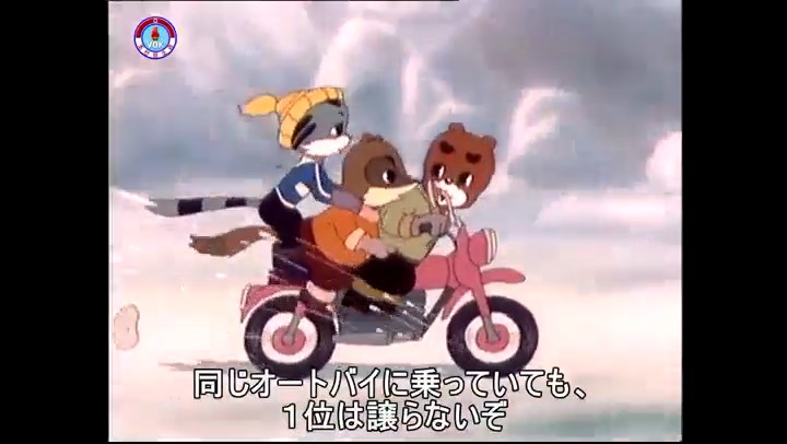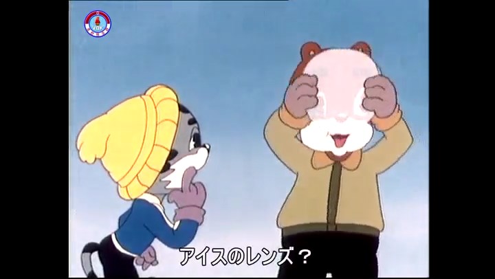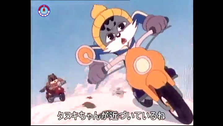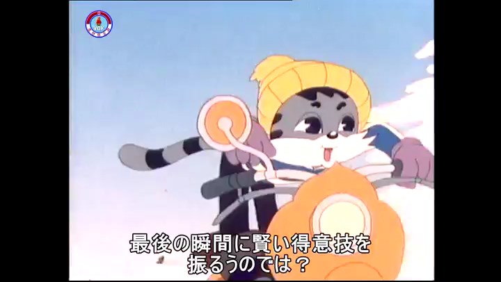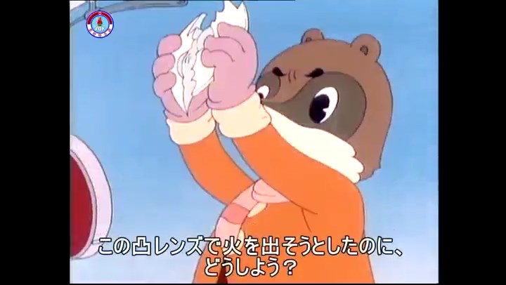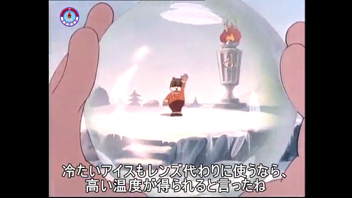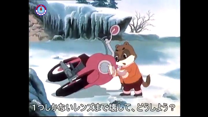 火を出したアイス※オープニング (歌) かしこいタヌキ 「ただ今から、烽火の塔に火を点じる競技を始めます 誰が先にマッチを使わずに火を点じるでしょうか」 火を出したアイス 「烽火の塔にマッチなしに火を点じるということか」 「よし、一位は問題ないぞ」 「これはね」 ―そうなら、一番先に火を点じるだろう 「今日の試合でこのライトをうまく利用するなら…」 「タヌキちゃんがあんなに離れて追っていて…」 ※コース各所に設置されている朝鮮式遠隔操作カメラの映像を見ている方々。 「しっ、静かに」 「一位になろうとするのか 今に見ろ ネコちゃん、どいてどいて」 ※崖にかかる倒木の橋。ネコはジャンプして崖を越える。着地の反動で倒木の端が浮き上がり、クマのオートバイの前輪に刺さる。パンクする。 「静かにしろ」 「クマちゃん、どいて」 「この凸レンズで火を出そうとしたのに、どうしよう?」 ※木に絡み付いたツタを手に入れるタヌキ。ツタの一方の端を車輪の取れたオートバイに、もう一方に石を結び付ける。崖の上の木に石を投げてツタを巻き付ける。エンジンを掛けてツタをハブに巻き付けて昇って行く。朝鮮式のオートバイはリアサスペンションに駆動力を伝える機構がある。 「タヌキちゃん頭を使うね」(※感心するウサギ審判委員) ※タヌキ、崖の上の木に引っ掛かっているタイヤを取ろうとするが落としてしまう。崖の向こうではパンクを直そうとしているクマ。タイヤは転がってクマの手元に。 「これはどうしたたなぼただい?」 ※崖をジャンプしてくるクマのオートバイ、飛び乗るタヌキ。 「太っ腹のくせに、結構すばやいね」 ※先を行くネコ。S字カーブの標識? スピードを出し過ぎてオートバイは崖下に転落。 「どうしよう?」 ※そこへクマとタヌキの二人乗りオートバイがやって来る。タイミングを見計らって飛び乗るネコ。 「どうしてみんなおれのオートバイにすがりつくんだい?」 ※烽火の塔までやって来る3匹。突き出ていた岩?にぶつかる。 「1つしかないレンズまで壊して、どうしよう?」 ※木を倒すクマ。 「玉石、玉石がどこにある?」※玉石(火打石みたいなもの?)を探すネコ。 「タヌキちゃんがいかにかしこいと言っても、アイスの上では駄目だね」 ※クマは木をこすり合わせ、ネコは玉石を打ち合わせて火を起こそうとする。 「腕が痛い」 「やあ、煙だ、煙」 「つむじ風だ!」(※3匹とも飛ばされてしまう) 「あ、あれだ (※タヌキがツララを見て閃く) レンズ代わりにアイスで…そうだ」 「やあ!」(※ツララを折って手頃な大きさに削り出すタヌキ) 「タヌキちゃん変だね」 ※クマとネコ、其々火を起こしている。見守るテレビの前の方々。タヌキも氷で作ったレンズで火を点けようとするが日が陰る。クマとネコも必死に火を起こそうとする。日が照って紙に種火が点く。 「火だ!」 「ついに、かしこいタヌキが一番先に烽火の塔に火を点じました」 「これ、アイスじゃないか」 (芸術) 2020.08.17 サイト動画の字幕抜き書き
