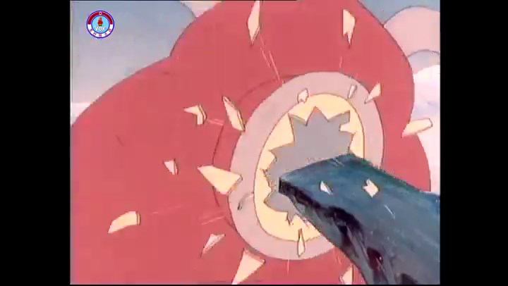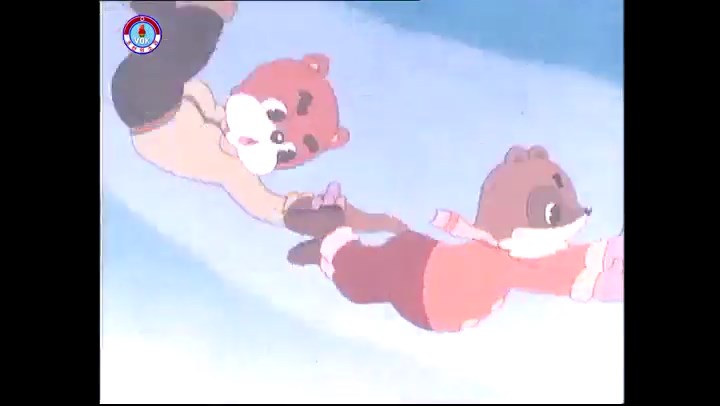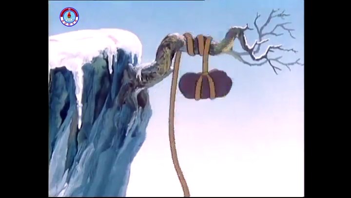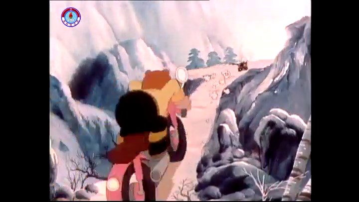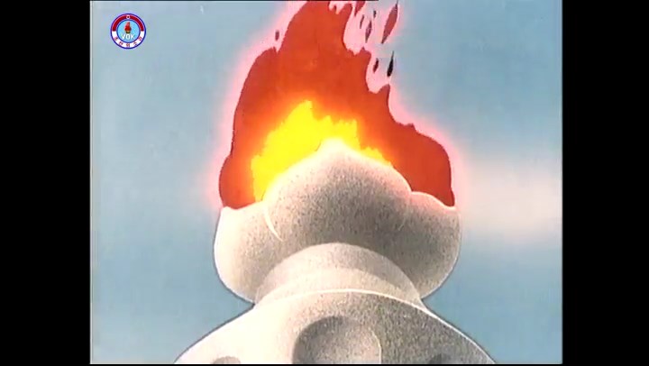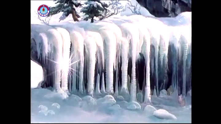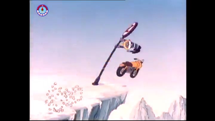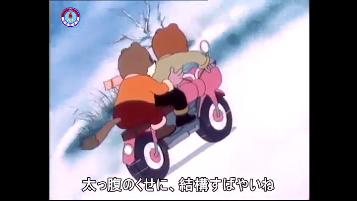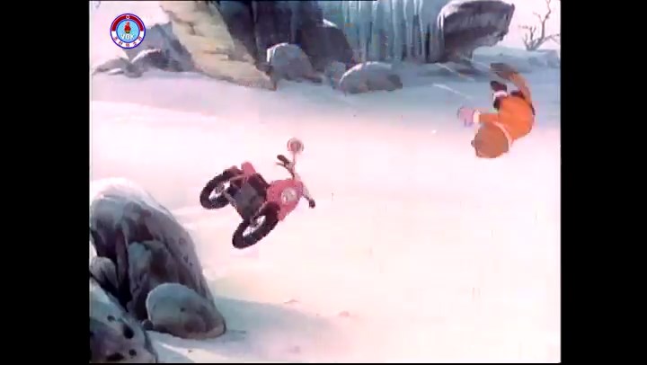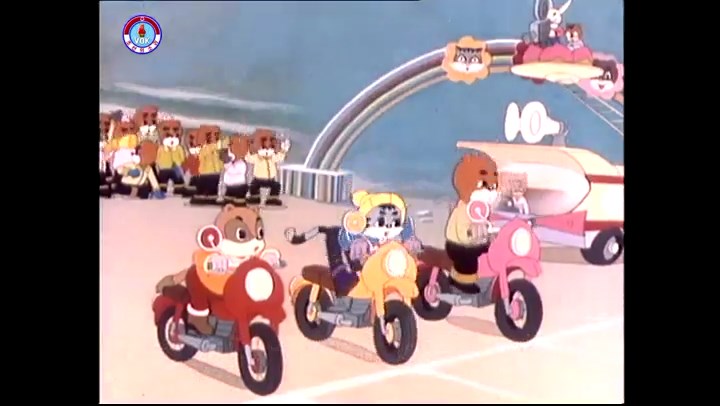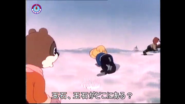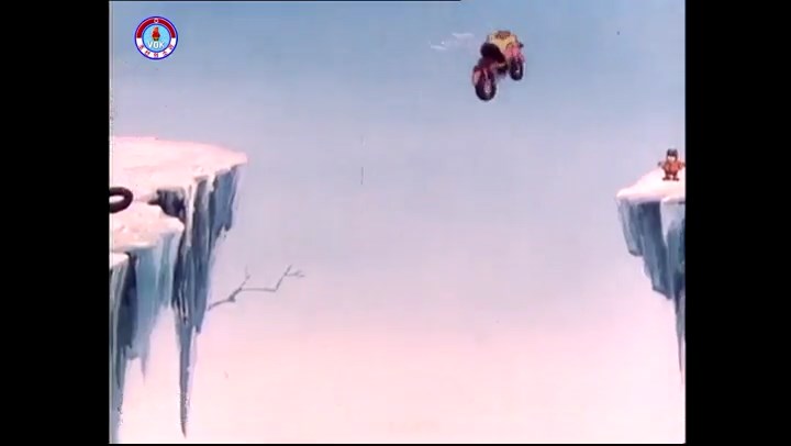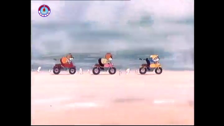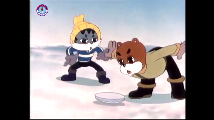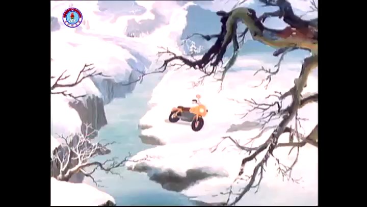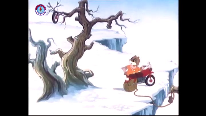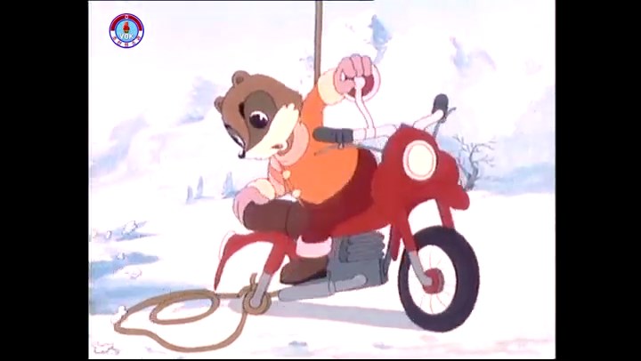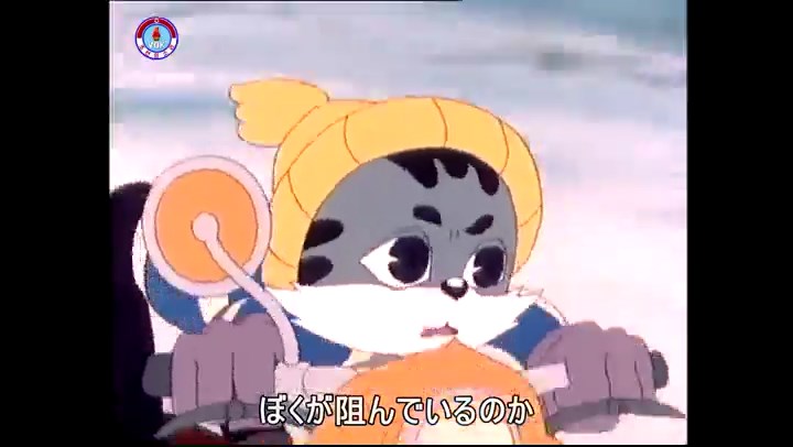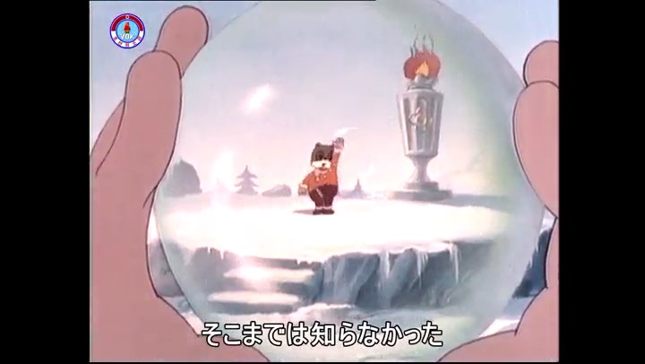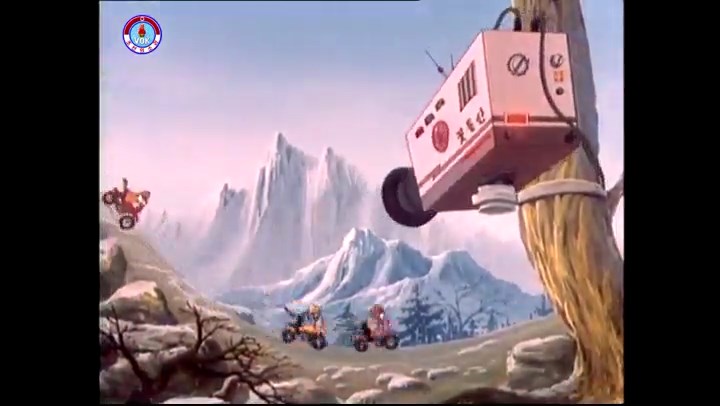火を出したアイス※オープニング (歌) かしこいタヌキ 「ただ今から、烽火の塔に火を点じる競技を始めます 誰が先にマッチを使わずに火を点じるでしょうか」 火を出したアイス 「烽火の塔にマッチなしに火を点じるということか」 「よし、一位は問題ないぞ」 「これはね」 ―そうなら、一番先に火を点じるだろう 「今日の試合でこのライトをうまく利用するなら…」 「タヌキちゃんがあんなに離れて追っていて…」 ※コース各所に設置されている朝鮮式遠隔操作カメラの映像を見ている方々。 「しっ、静かに」 「一位になろうとするのか 今に見ろ ネコちゃん、どいてどいて」 ※崖にかかる倒木の橋。ネコはジャンプして崖を越える。着地の反動で倒木の端が浮き上がり、クマのオートバイの前輪に刺さる。パンクする。 「静かにしろ」 「クマちゃん、どいて」 「この凸レンズで火を出そうとしたのに、どうしよう?」 ※木に絡み付いたツタを手に入れるタヌキ。ツタの一方の端を車輪の取れたオートバイに、もう一方に石を結び付ける。崖の上の木に石を投げてツタを巻き付ける。エンジンを掛けてツタをハブに巻き付けて昇って行く。朝鮮式のオートバイはリアサスペンションに駆動力を伝える機構がある。 「タヌキちゃん頭を使うね」(※感心するウサギ審判委員) ※タヌキ、崖の上の木に引っ掛かっているタイヤを取ろうとするが落としてしまう。崖の向こうではパンクを直そうとしているクマ。タイヤは転がってクマの手元に。 「これはどうしたたなぼただい?」 ※崖をジャンプしてくるクマのオートバイ、飛び乗るタヌキ。 「太っ腹のくせに、結構すばやいね」 ※先を行くネコ。S字カーブの標識? スピードを出し過ぎてオートバイは崖下に転落。 「どうしよう?」 ※そこへクマとタヌキの二人乗りオートバイがやって来る。タイミングを見計らって飛び乗るネコ。 「どうしてみんなおれのオートバイにすがりつくんだい?」 ※烽火の塔までやって来る3匹。突き出ていた岩?にぶつかる。 「1つしかないレンズまで壊して、どうしよう?」 ※木を倒すクマ。 「玉石、玉石がどこにある?」※玉石(火打石みたいなもの?)を探すネコ。 「タヌキちゃんがいかにかしこいと言っても、アイスの上では駄目だね」 ※クマは木をこすり合わせ、ネコは玉石を打ち合わせて火を起こそうとする。 「腕が痛い」 「やあ、煙だ、煙」 「つむじ風だ!」(※3匹とも飛ばされてしまう) 「あ、あれだ (※タヌキがツララを見て閃く) レンズ代わりにアイスで…そうだ」 「やあ!」(※ツララを折って手頃な大きさに削り出すタヌキ) 「タヌキちゃん変だね」 ※クマとネコ、其々火を起こしている。見守るテレビの前の方々。タヌキも氷で作ったレンズで火を点けようとするが日が陰る。クマとネコも必死に火を起こそうとする。日が照って紙に種火が点く。 「火だ!」 「ついに、かしこいタヌキが一番先に烽火の塔に火を点じました」 「これ、アイスじゃないか」 (芸術) 2020.08.17 サイト動画の字幕抜き書き