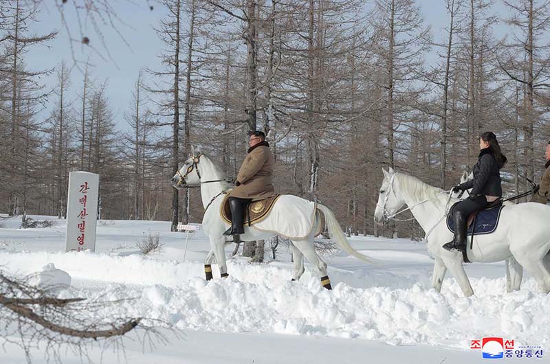 ペクトゥ山の白雪に残した足跡白雪を戴くペクトゥ山*1を遠くから眺めれば壮大な雪の山らしく、また、山の頂上から銀世界の山河を見下ろせばペクトゥ山はまるで雪の海に浮かぶ大きな船のようである。 ペクトゥ山の標高は2750メートルである。ペクトゥ山は朝鮮のシンボルで、悠久な年月を経てこの国をしっかり支える山岳の荘厳さを増す千里樹海の雪はペクトゥ山のシンボルである。 ペクトゥ山の不退転の意志で折り重なる万難を単身乗り切り、共和国の偉大な国威を世界に轟かせ、革命発展の一大跳躍期を開いて行くペクトゥの名将である金正恩総書記! ペクトゥ山の雪を胸にしまい、革命の命脈で底知れない愛国の熱源であるペクトゥの革命戦跡地を巡る総書記の気高い足跡を朝鮮人民は胸熱く思い起こしている。 3年前のチュチェ108(2019)年12月の初め、金正恩総書記は革命の指揮メンバーと共にペクトゥ山の戦跡地を巡った。この日、軍馬に跨ってペクトゥの大地を疾走し、深い雪の道を掻き分け、焚き火に体を温めたりして総書記は、ありとあらゆる困難と試練に耐え抜いた抗日革命闘争の気高い歴史を振り返った。 総書記は戦跡地に残されている偉大な金日成主席の聖なる足跡と抗日革命家の高貴な魂を胸に刻み、チョンボン宿営地、コンチャン宿営地、リミョンス区、ムドゥ峰*2とカンベク山、テガク峰*3の秘密のベースキャンプなどのペクトゥ山の革命戦跡地を見て回った。 総書記は、ペクトゥの大地は革命伝統の教育で重要な意義を持つ革命の富いっぱいの大露天革命博物館も同じだ、ペクトゥの大地の一本の木、一株の草にも国を取り戻すため血を流して戦った抗日革命の先達の魂が宿っているようだ、と言った。 そして、ペクトゥに根を下ろした栄えある革命伝統を永遠に守り、継承・発展させて、その偉大な伝統に基づく不屈の攻撃思想で革命の難局を打開し、開拓路を開くのがわが党の変わりのない決心で意志だと言った。 ペクトゥの名将の気高い意志を胸に、国中の人民がペクトゥの行軍路を歩み続けている。 ペクトゥの白雪に残した金正恩総書記の不滅の足跡は、チュチェの革命偉業をペクトゥの革命伝統を命脈にしてあくまで完成する党中央の揺るぎない意志を見せている。 (政治―為民献身) 2022.11.29の記事