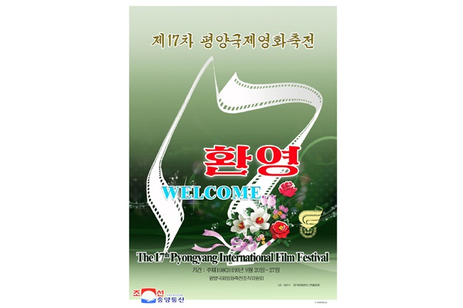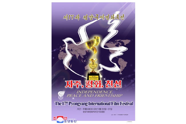 ポスターに「第17回ピョンヤン国際映画祭」という文字と祭典マーク、祭典期間が記されています。