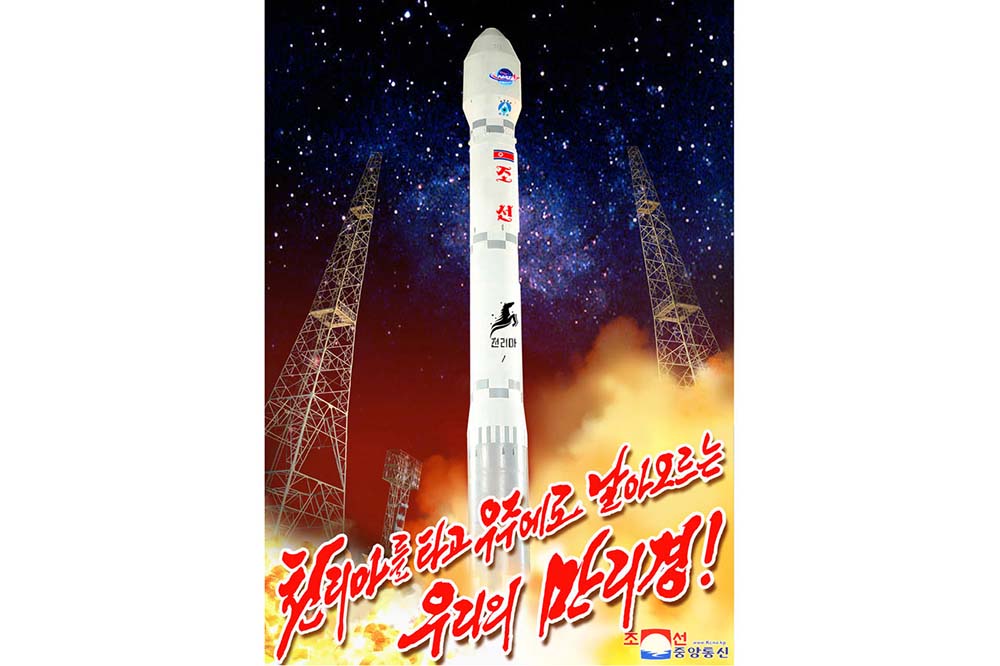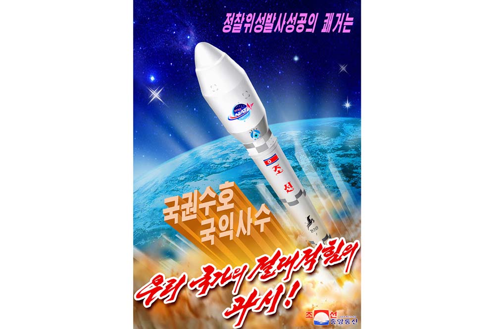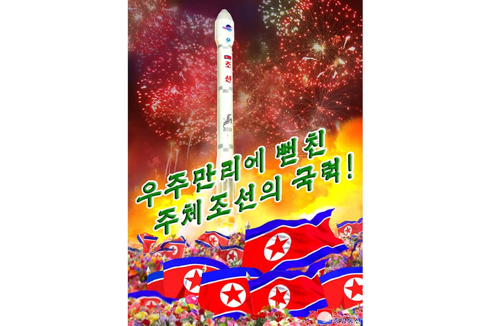 偵察衛星「マンリギョン1号」の打ち上げ成功を見せるポスターが出ました