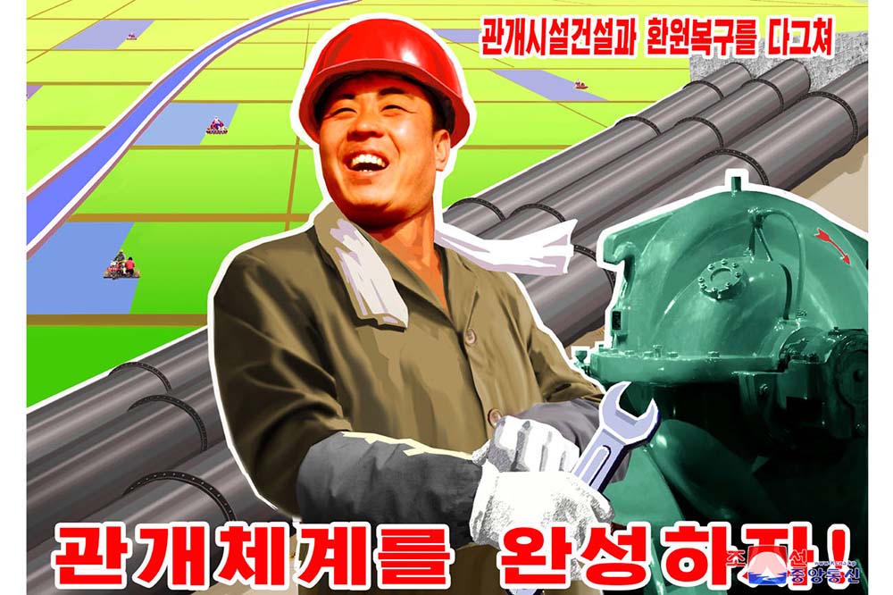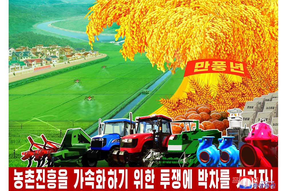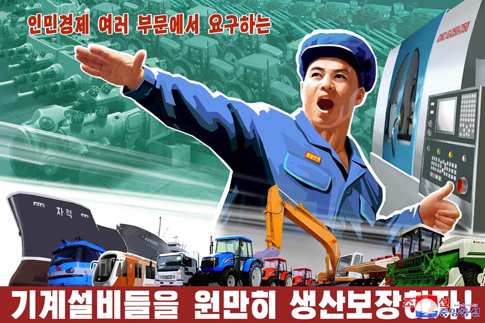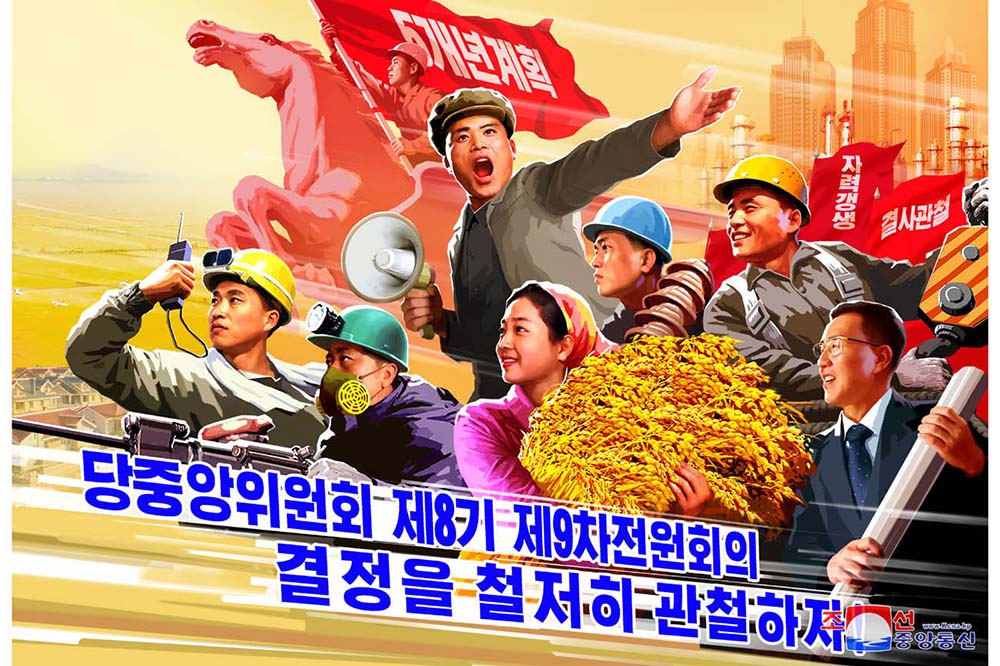 「党中央委員会第8期第9回総会の決定をあくまで実行しよう!」、「人民経済の各部門に求められる機械設備を円満に生産し供給しよう!」、「灌漑施設の建設と還元復興を促がして、灌漑システムを完成しよう!」などと題したポスターがそれです。