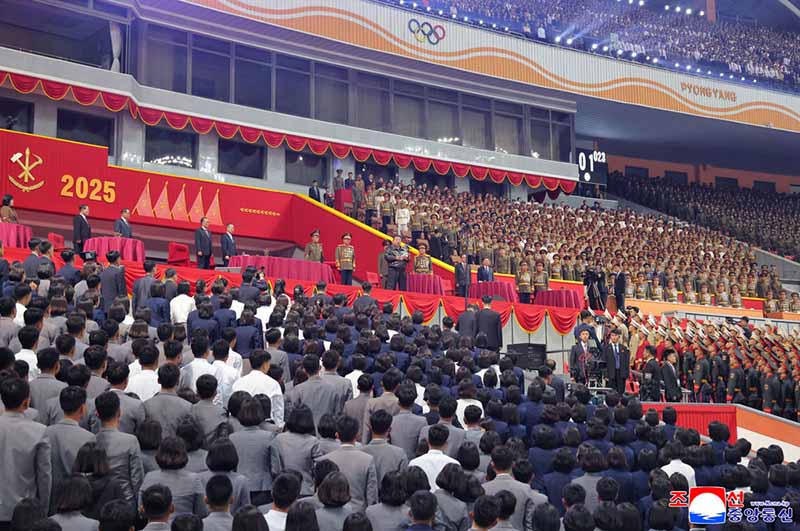朝鮮労働党総書記で朝鮮民主主義人民共和国国務委員長である敬愛する金正恩同志が10月12日、わが党の不朽の革命業績を大叙事詩的スペクタクルで広げた閲兵式と大マスゲーム・芸術公演、市民パレードおよびたいまつ夜会で朝鮮労働党創立80周年を盛大に祝うことに貢献した行事の参加者と保障メンバーを祝賀、激励し、共に大マスゲーム・芸術公演「朝鮮労働党万歳」を観覧した。