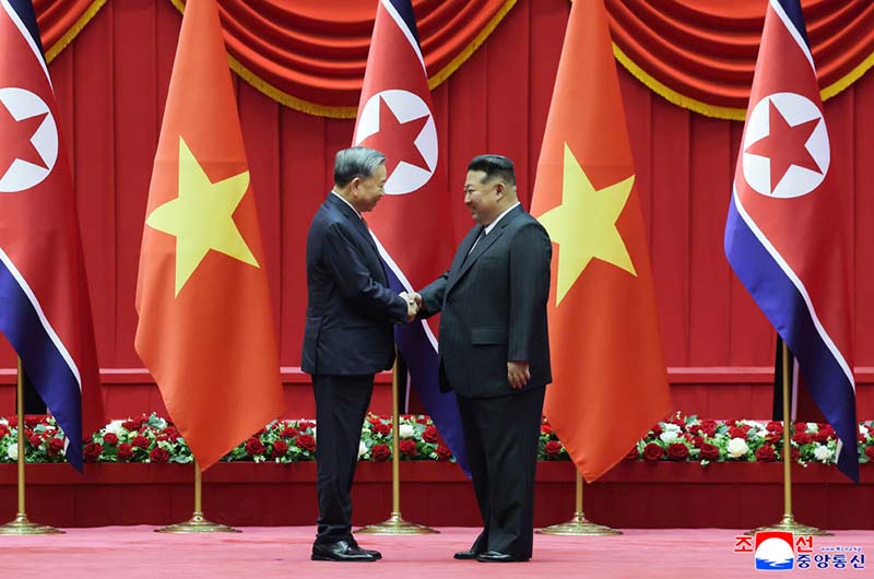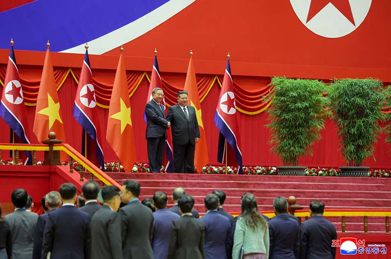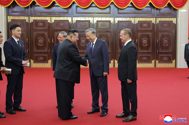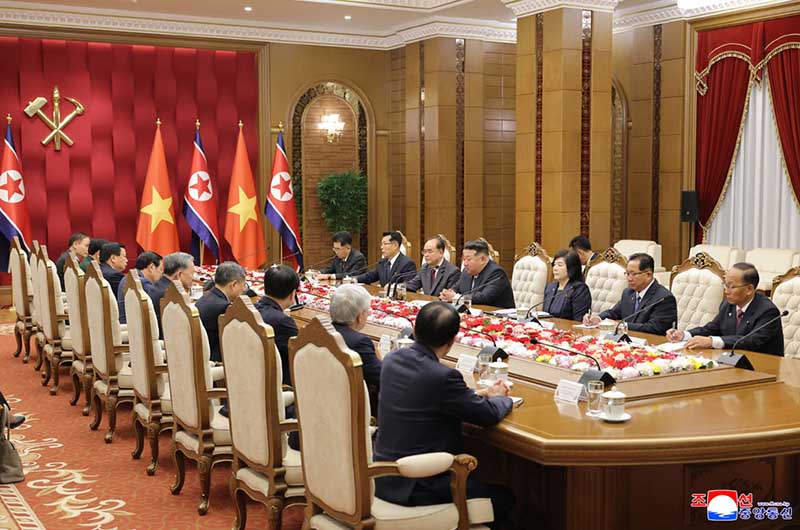 金正恩総書記は、ベトナムの党と人民の同志的友愛の情を抱いてピョンヤンを訪れたトー・ラム書記長を熱烈に歓迎し、今回の訪問が両党と両国人民の友好の絆を厚くし、わが党創立80周年を一層意義深いものにしていると述べた。