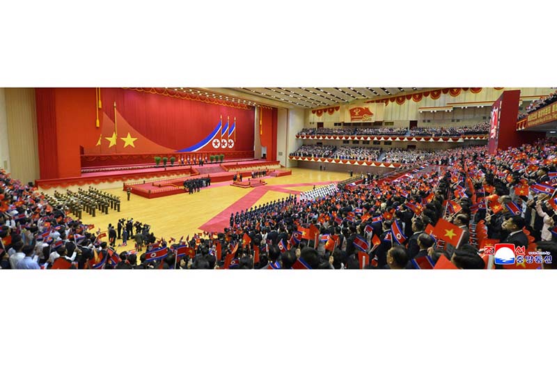 金正恩総書記が演説を終えると、導き手であるわが党に従って全面的国家興隆の活路を力強く開き、社会主義のわが祖国をこの世で最も強大で尊厳ある国としてその威容を全世界に宣揚するという人民の確固たる信念と意志が嵐のような「万歳!」の歓呼の声となって噴出した。
