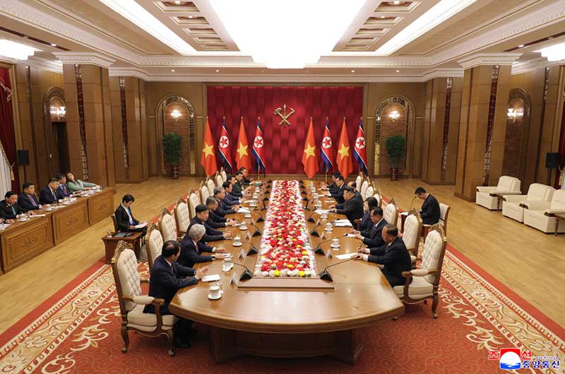 会談では、朝鮮とベトナムでの社会主義建設偉業を積極的に促し、長い歴史を有している両党、両国人民の協力関係を時代の要求に即して拡大するための問題と互いに関心を寄せる問題について虚心坦懐に意見が交換された。