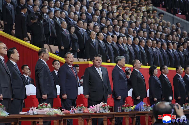 今日の慶祝大会には、わが党に対する支持と朝鮮人民に対する熱い友好の情を抱いてピョンヤンを訪れた各国の党及び政府首班と人士、国際民主団体の代表も出席しました。