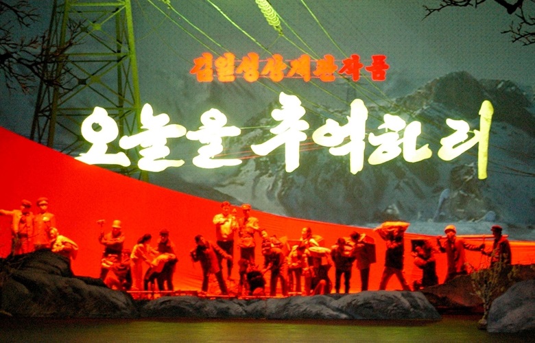 あれから10年あまりが過ぎたチュチェ99(2010)年5月末、私たちは総書記が、演劇「今日を追憶しよう」はチョンジャ、つまり、そのテーマが良いのでもう一度、立派に作りなおす必要があると言ったという話を伝え聞きました。先軍指導の多忙な中、一編の演劇作品にまで深い関心をはらう総書記の思いやりに胸を強く打たれ、10年余りも前に断念のやむなきに至っていた演劇の台本を再度開いてみました。