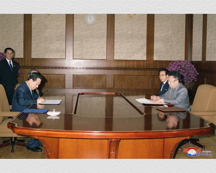 偉大な金正日総書記は会談の準備を具体的に指導し、統一問題を必ず朝鮮民族同士自主的に解決しなければならない、対面で書類なんかをひとつ採択するより、民族自主、民族の主体的立場を徹底的に固守し、実際の問題を解決するべきだといいました。