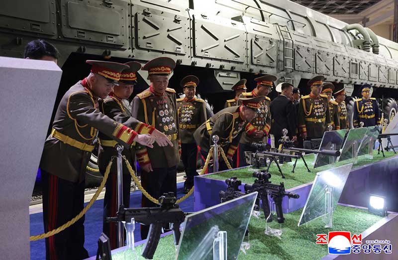 金正恩総書記は、党と政府、武力機関の指導幹部と共に展示会場を見て回った。