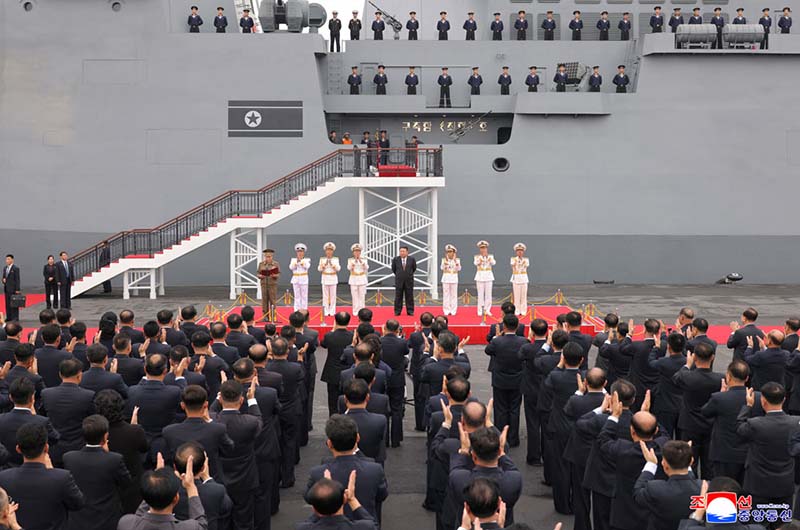 金正恩総書記は、栄えあるわが党の創立80周年を迎える歴史的な年に祖国の海上に巍然と浮かんだ超強力の軍艦は主体的武装力の強化・発展のはっきりした証左であり、朝鮮労働党の自衛的国防路線の正当性と生命力のもう一つの偉大な実証であると述べた。