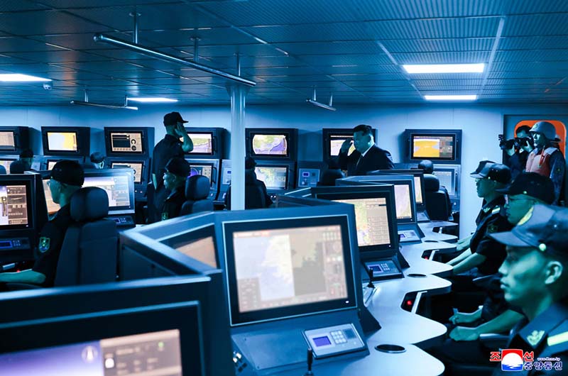 金正恩総書記は、艦長の案内を受けながら艦に搭載された主要武力装備と艦の各所を見て回った。