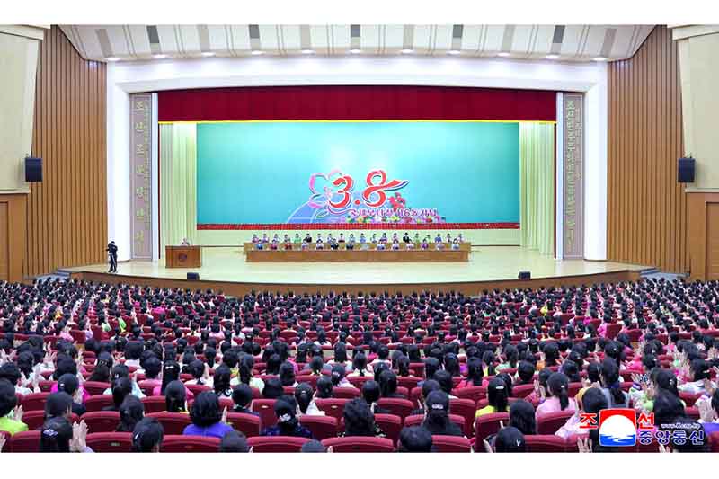 社会主義大家庭の永遠なる和睦と繁栄、子々孫々隆盛する祖国のために、金正恩総書記だけに従ういちずな道で女性革命家、共産主義的母親という誇り高い名を変わることなく輝かす鉄石の信念と意志を謳歌した3・8節記念公演は観客の大絶賛を博した。