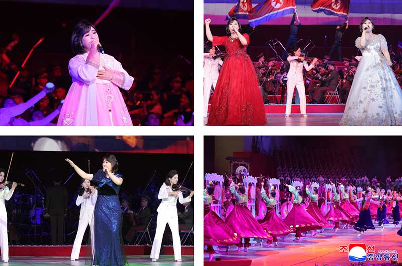 出演者は、わが人民誰もが愛する頌歌を熱唱しながら、祖国の強盛のための道程にささげる清らかな良心と私心のない努力を真珠や宝石のように大切にし、栄誉と敬意の最も高い壇上に押し上げる母なる党に対する国の全ての女性の最大の敬慕の念を格調高く歌った。