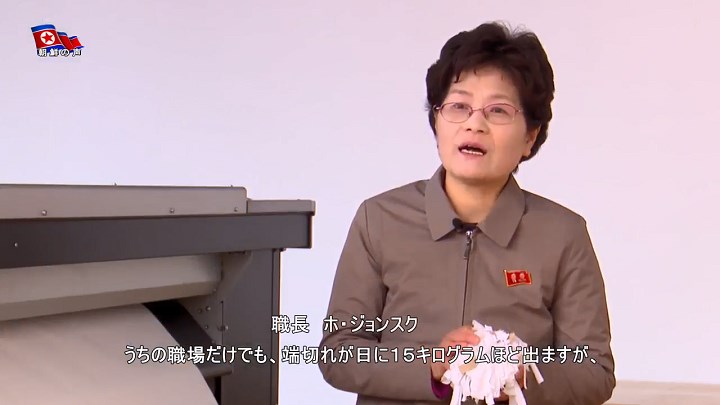 「昨年の増産量の10倍に達する増産の目標を掲げたサンウォン・セメント連合企業所の労働者の模範を見習い、うちの工場でも今年、より多くの絹糸を増産する目標を掲げて励んでいます」