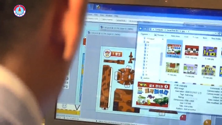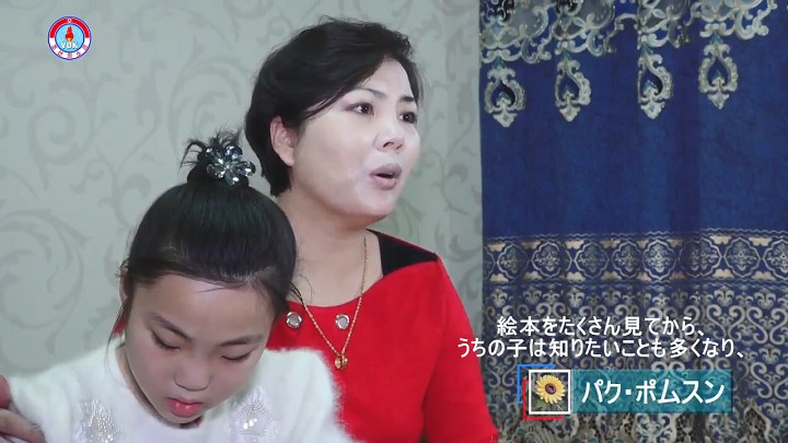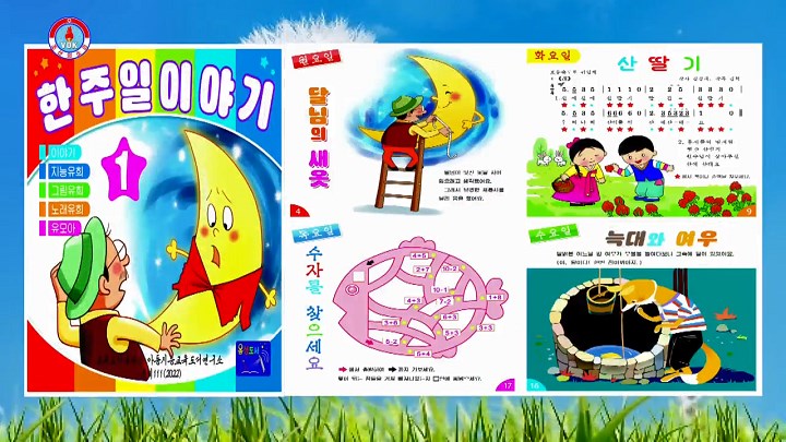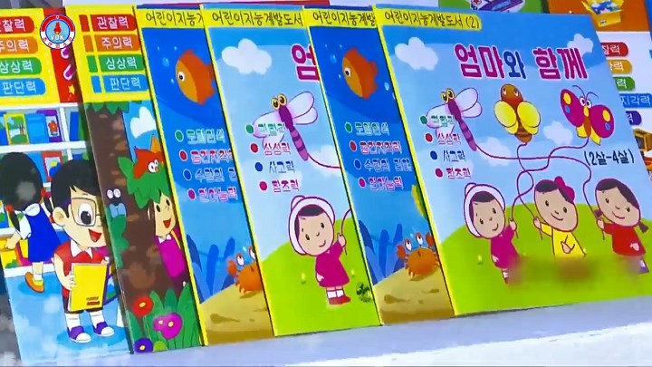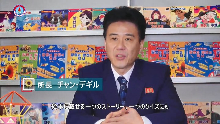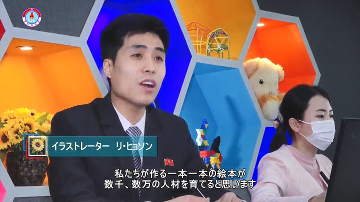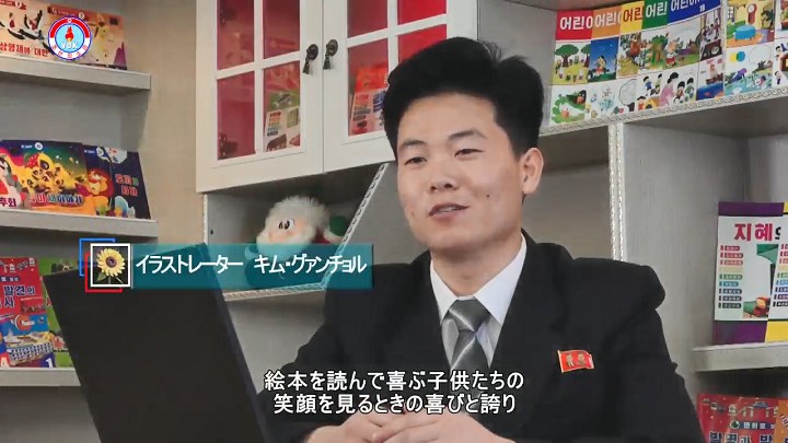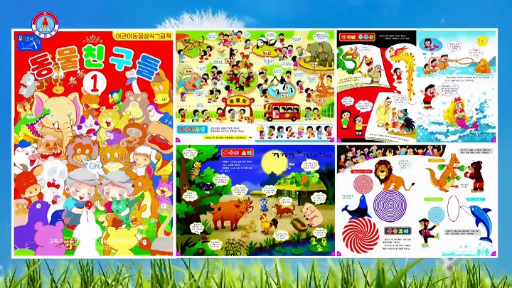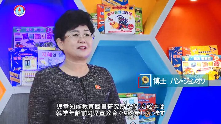 子供たちの道連れカン・ソンヒ(カン・ソニ):子供皆に好まれている絵本。今、知能教育に力が入れられ絵本の形と内容も更にバラエティー豊かなものになっています。 共和国指折りの絵本作家のチャン・デギルさんです。チャンさんをはじめ研究所の人達が作った絵本は子供達の間で大人気です。 所長 チャン・デギル