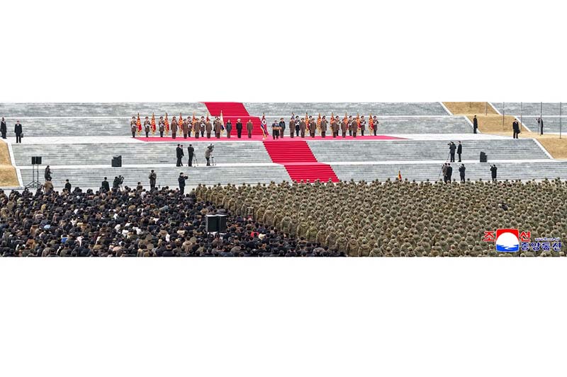 海外作戦地域で党の戦闘命令を貫徹し帰国する第528工兵連隊の歓迎式が12月12日、首都ピョンヤンの4・25文化会館広場で盛大に行われた。