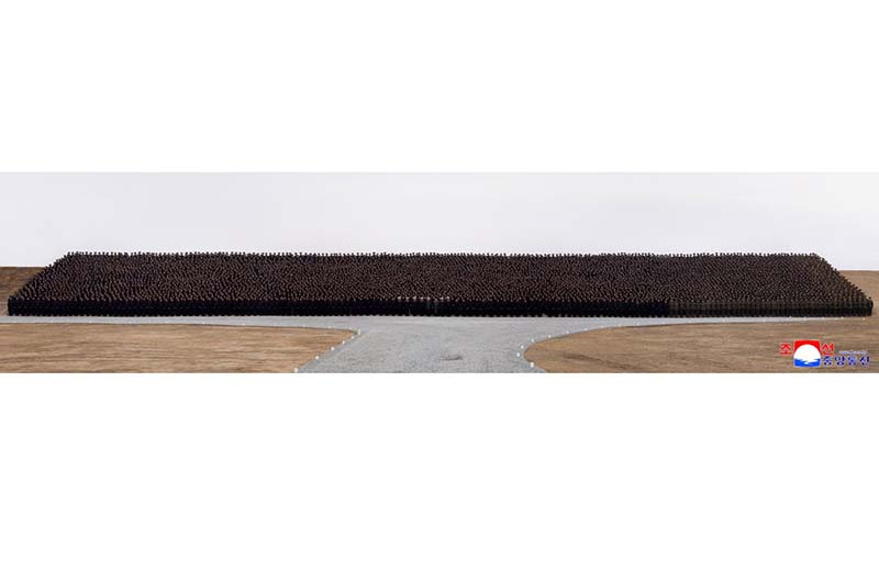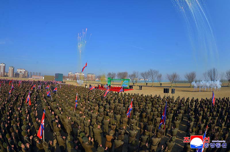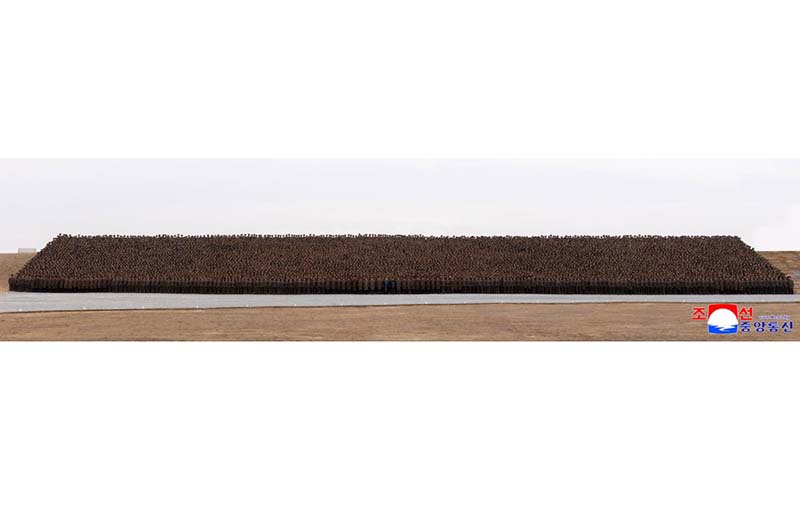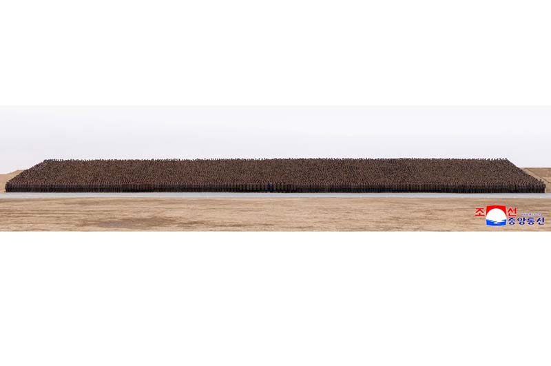 全ての参加者は、祖国の一部分の地を大変革させる壮大な建設闘争の先頭に軍人と青年を立たせ、偉大な指導の足跡を重ねて印し、愛と情を尽くして革命的成長の一歩一歩を温かく導く父なる金正恩元帥を仰いで熱狂的な歓呼の声を上げ続けた。