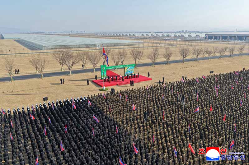 演説者は、わが党が人民のために開始したこの上なく誉れ高くて張り合いのある温室総合農場の建設がついに完了し、わずか一年間にかつてなかった大温室群の壮大な景観を広げたとし、今日の竣工はより遠大な目標に向けた活気が溢れる進軍でつながる2026年の驚異的な変革を象徴する出来事的成果であると述べた。