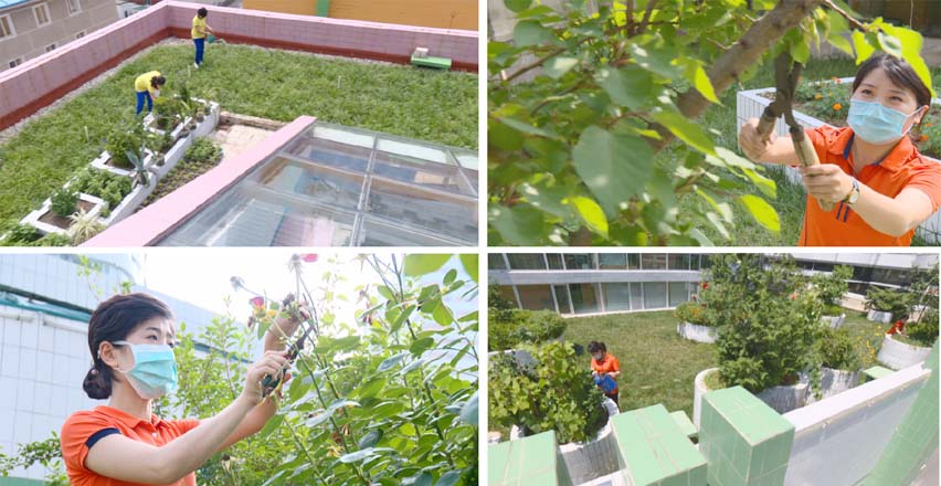 超高層住宅の基壇層にも常緑樹と花の木を植えましたが、とても美しい景観です。屋上の緑化は環境保全によいばかりか、冷暖房の効果も出しています。夏は室内温度が4.5度ほど落ち、冬は2.5度ほど上がると言います。 「都会の野菜工場」と呼ばれる水耕栽培による屋上ハウスも関心を集めています。いくつもの公共施設に屋上ハウスがあって、野菜を栽培しています。リョミョン通りの住宅と公共施設には音や光センサーのライトが設置され、電気を多量節約しています。 住宅にはソーラーパネルも設置されています。その他、壁面緑化技術、雨水の再利用技術、芝ブロックのような多様なエコ建築技術が導入され、その経済的効率が実証されています。 リョミョン通りの建設を発案した敬愛する最高指導者金正恩委員長は、全ての住宅とサービス施設、公共施設にエコ建築技術を導入して省エネ型、エコ型のタウンにするよう精力的に導きました。 朝鮮労働党の恩情の中に建てられたリョミョン通りに、人民のより文化的で明るい未来を描いてみる思いです。 (今日の朝鮮) 2020年の記事