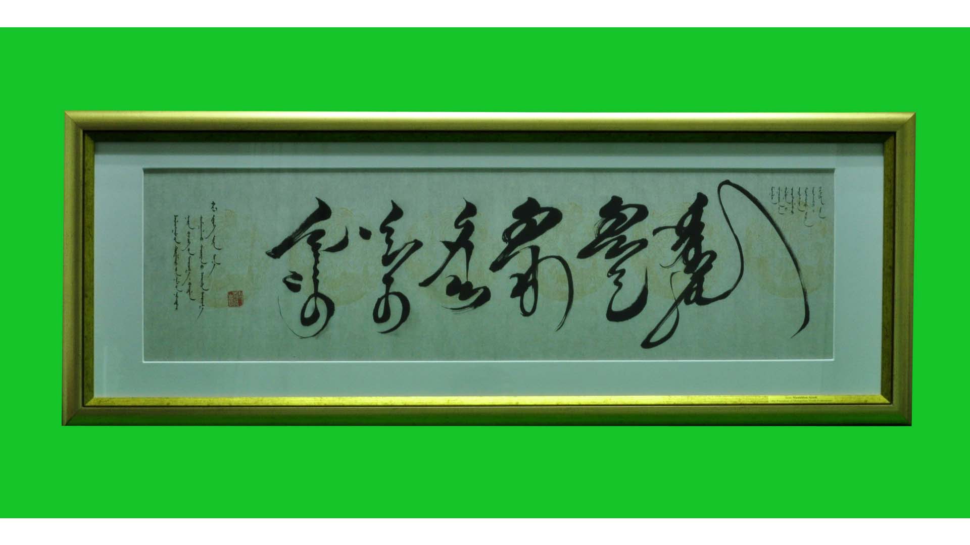 作品には6字のモンゴルの民族文字が書かれています。