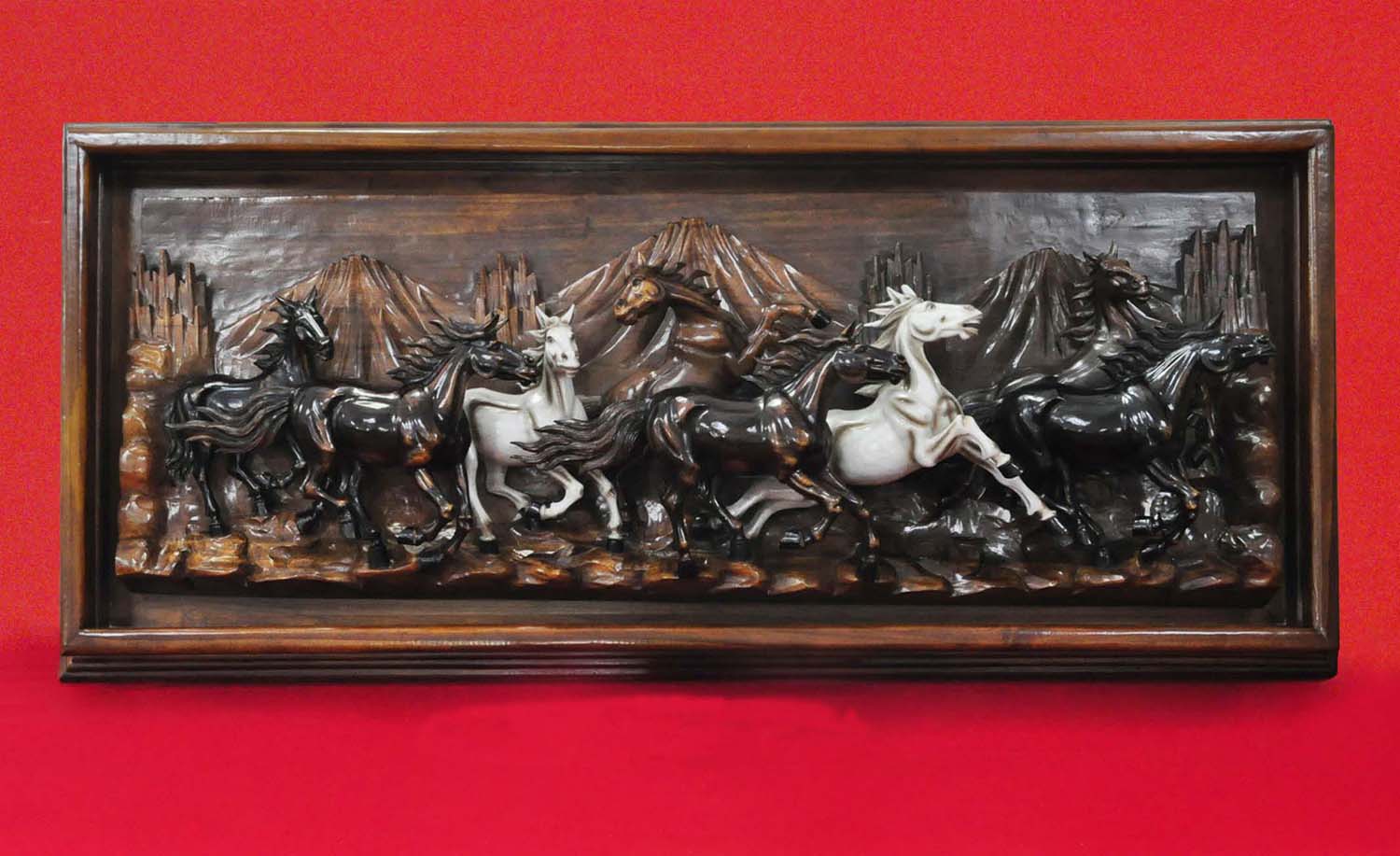敬愛する金正恩総書記に2012年4月15日、インドネシアのラビトラ・バフテラ・プラタマ船舶会社社長から贈られた木彫り『勝利目指して疾走する8頭の馬』です。