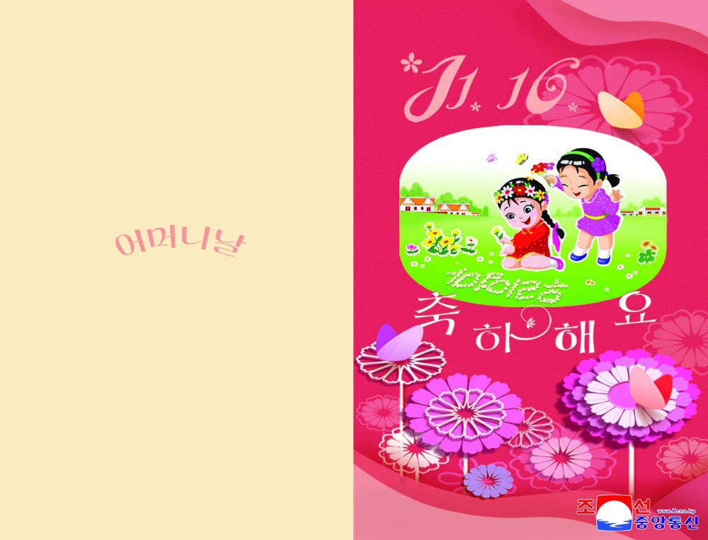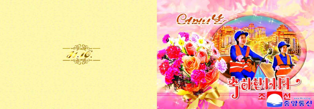 文学芸術出版社、中央美術創作社の創作家とピョンヤン美術大学の教員、学生は、国中の母親に寄せる熱い思いを込めて19種の祝賀状を出しました。