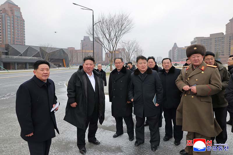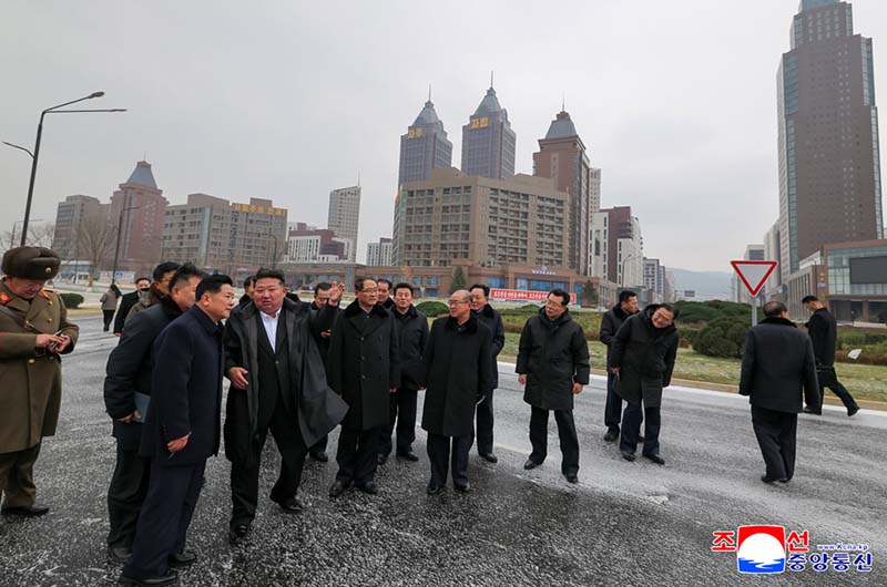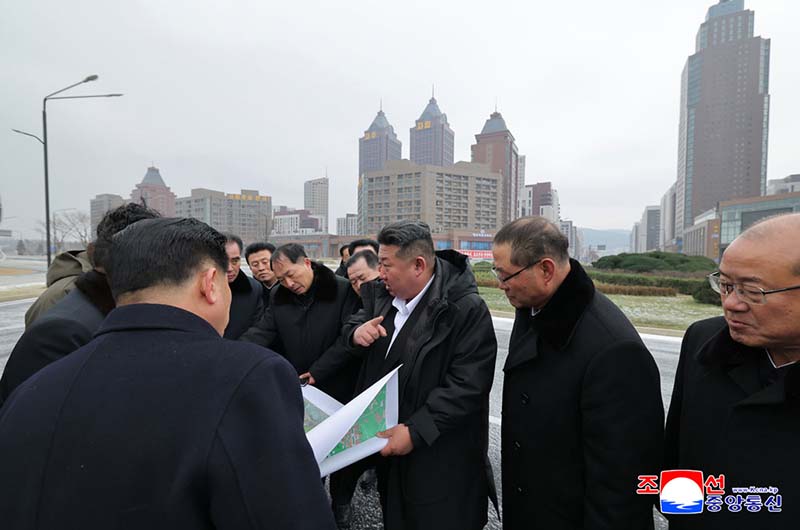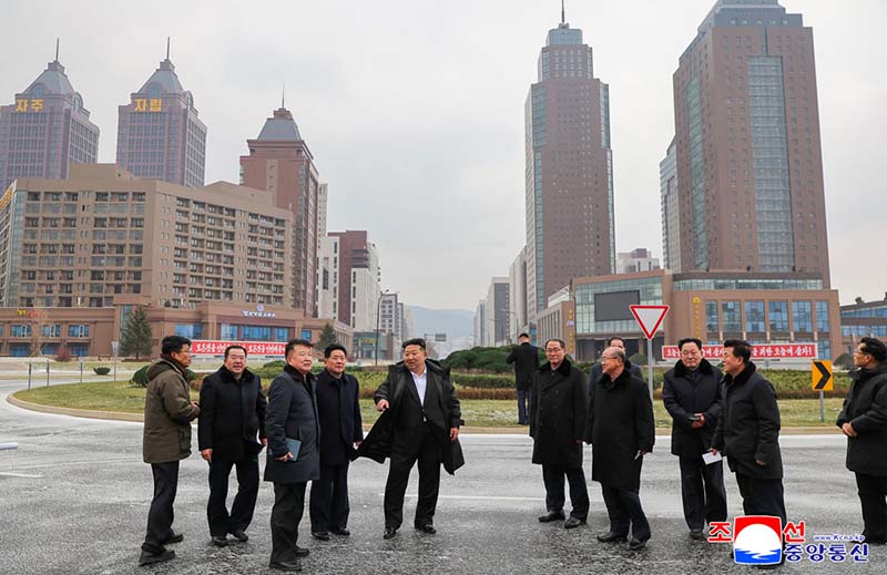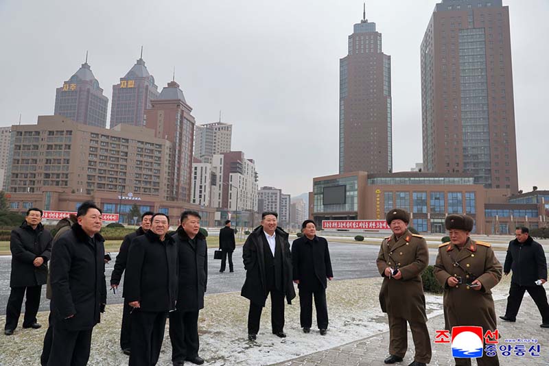 金正恩総書記は、ファソン地区に新たに建設されたセッピョル(明星)通りを見て回った。