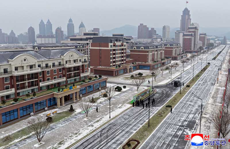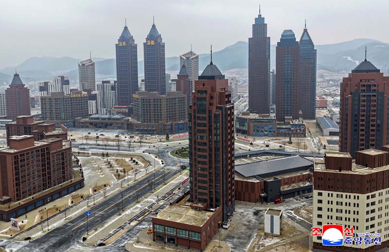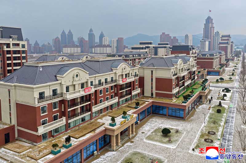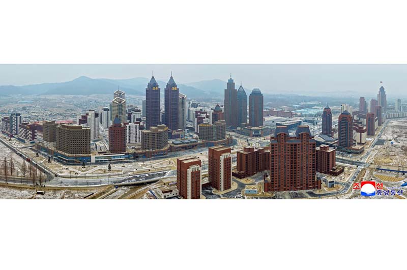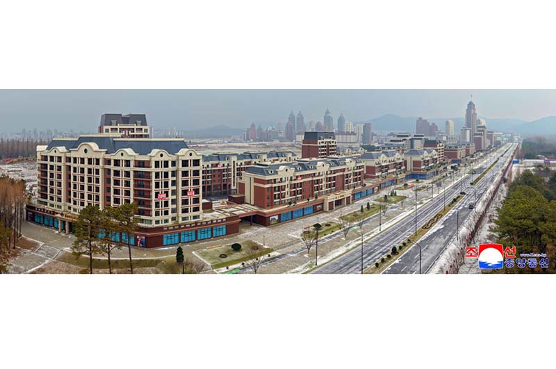 金正恩総書記の直接的な発起と指導によって、ファソン地区には第4段階1万世帯住宅建設計画とは別途に高層、中・低層住宅と商業およびサービス施設などの公共建物が理想的に調和したもう一つの建築群が異彩を放つ壮観を成している。