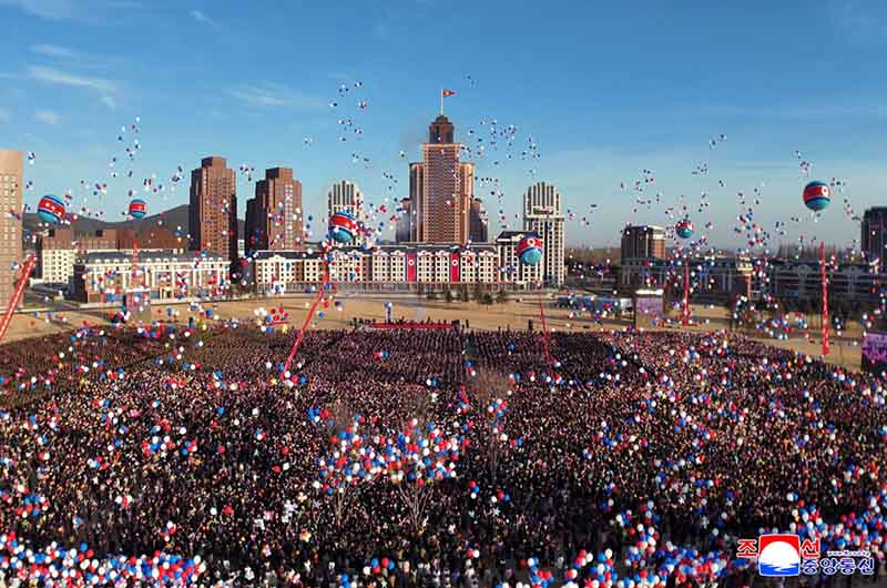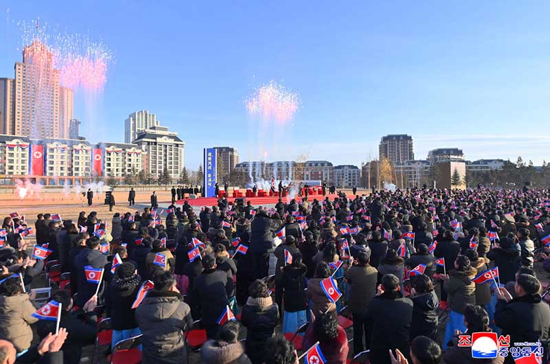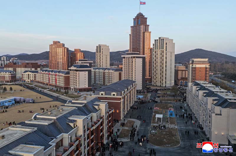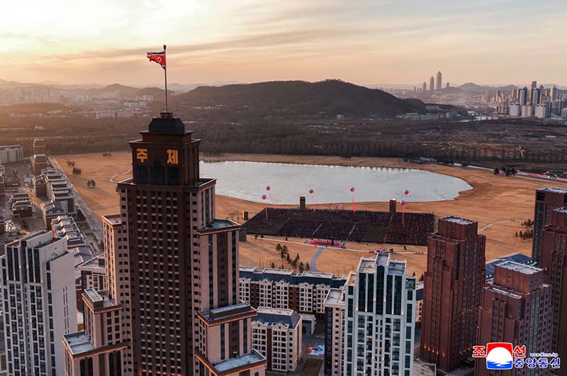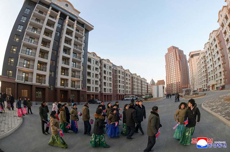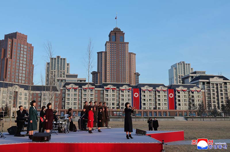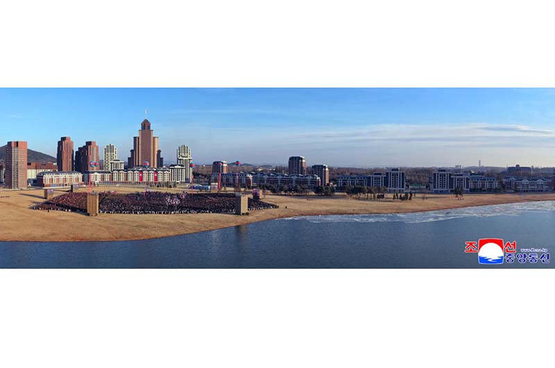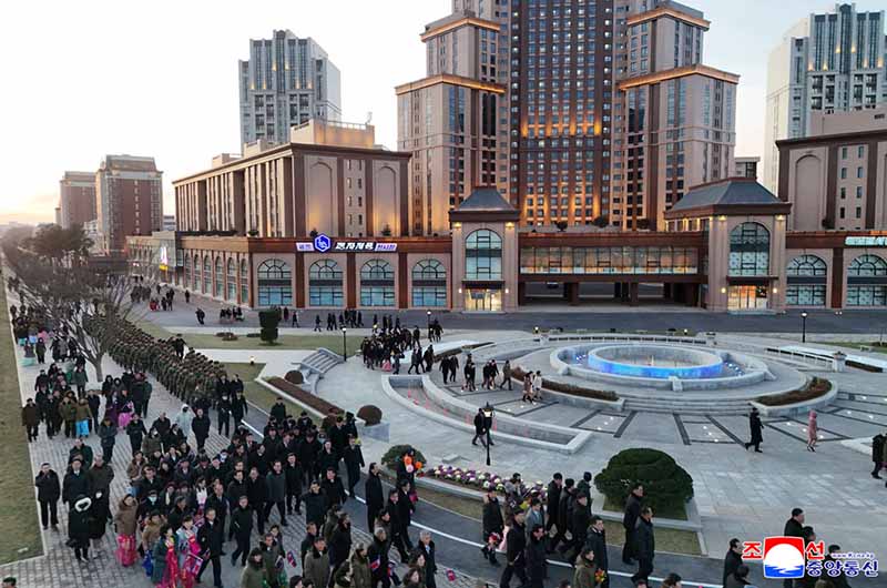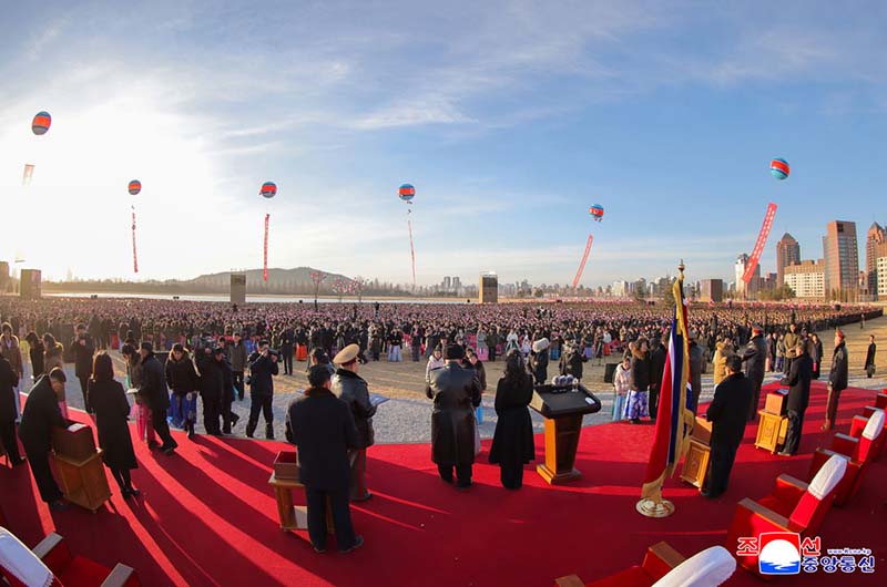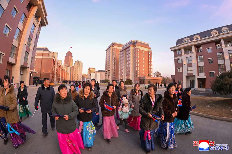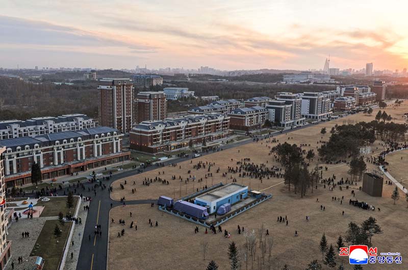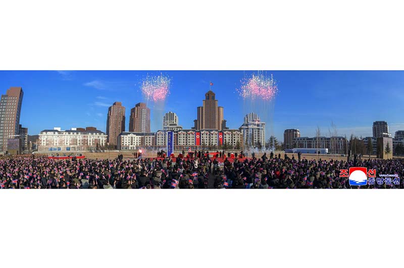 党中央の意志に従って素晴しい新たな通りをうち建てた軍民建設者と全国の祝福を受けながら新しい住宅に入居する遺族の感激と歓喜によって、竣工式場は限りなく沸き返っていた。