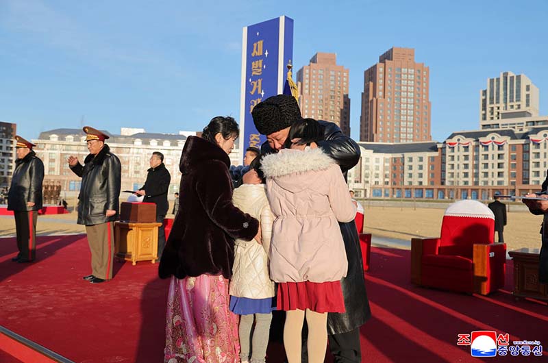 金正恩総書記は、これからわが党と政府が遺族を全的に見守る、立派な家でいつまでも幸せを享受するよう願うと述べ、血縁の情溢れる愛のシーンを残した。