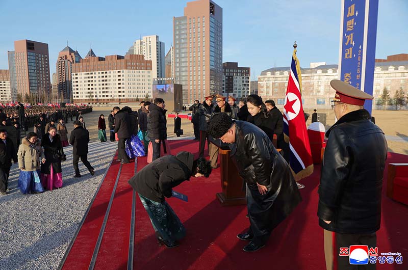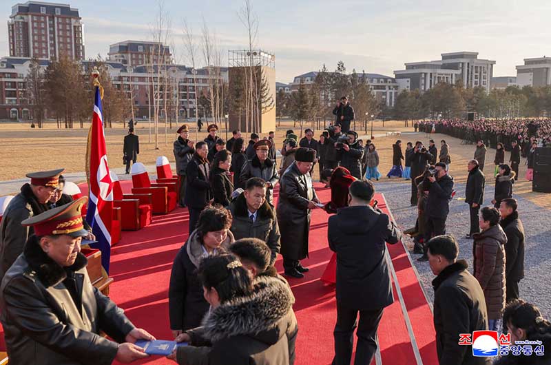 金正恩総書記は、今や遺族が首都の新しい住宅で祖国の美しい生活を他人より先に享受できるようになったので、胸の中に残っていたわだかまりが少しでも解されるようだとし、わが国家の限りない繁栄と強大さのために歴史に末永く残る偉大な勲功を立てた参戦英雄らとその家族は当然、祖国と人民が与える最上の栄光と尊大を受けなければならないと述べた。