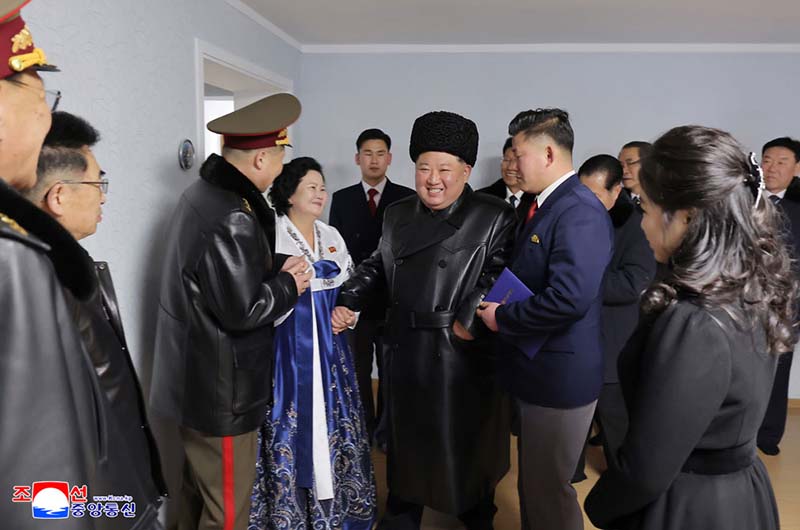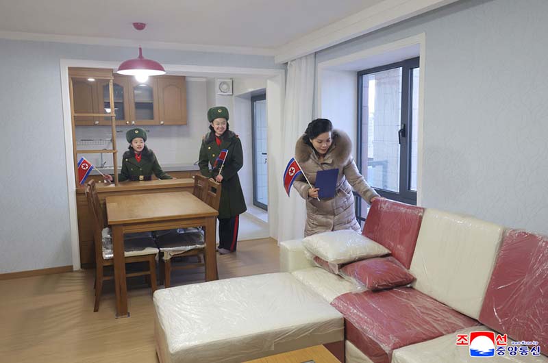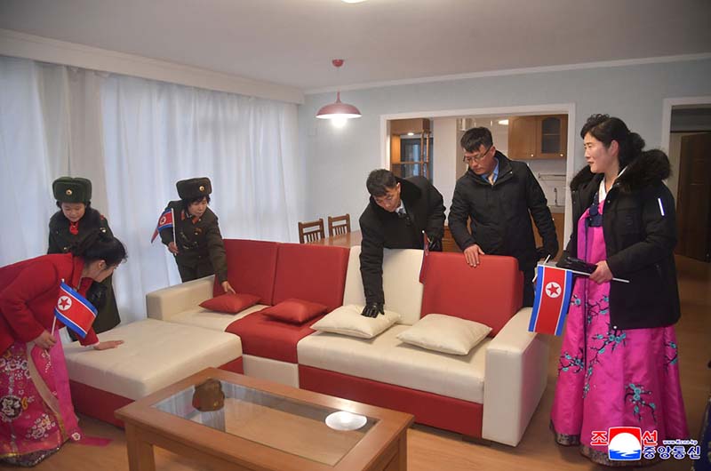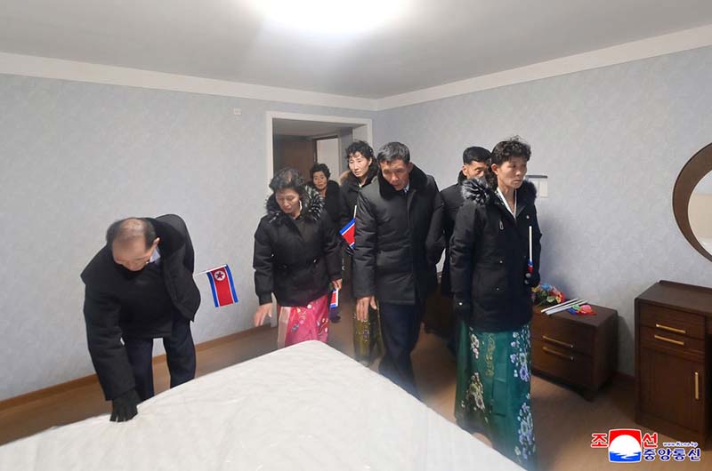 金正恩総書記は、新宅に入居する遺族に会った。