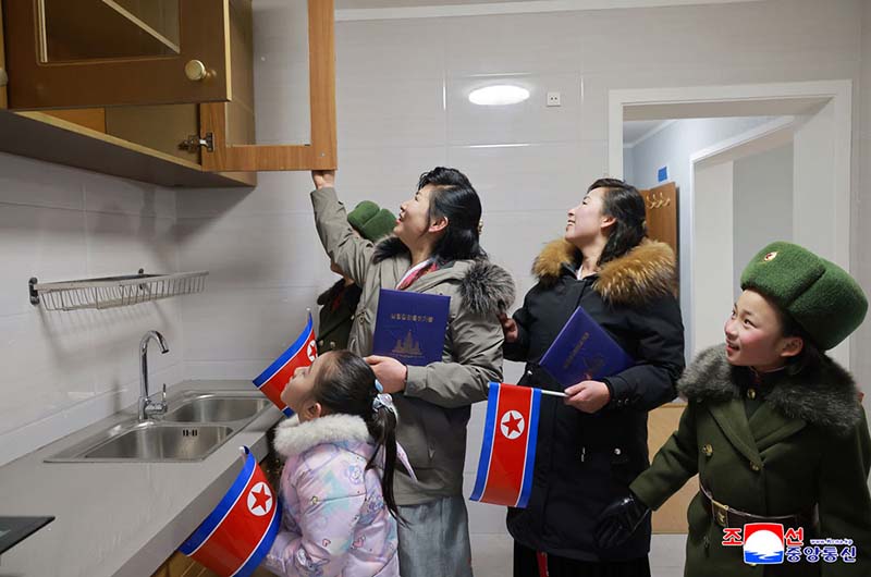 全ての生活条件が最上の水準でそろっている住宅を見て回りながら彼らは、総書記の恩恵、わが党の愛がどんなに大きいのかを全身で痛感した。