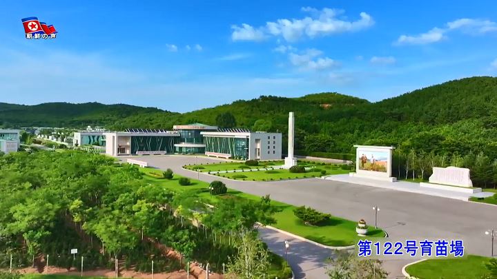 朝鮮人民軍第122号育苗場:青い森さやぐ明日を描き、育苗場のモデル、育苗場のモデルに、育苗場は軍需工場に等しい、育苗場を訪れて、国の富を築くために、国の未来を思い描いて、次世代のために必ずやるべきだ、万年の計の富を譲り渡そうと、優しい恩師