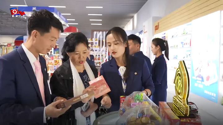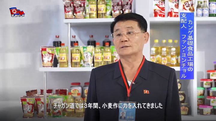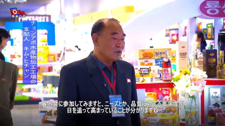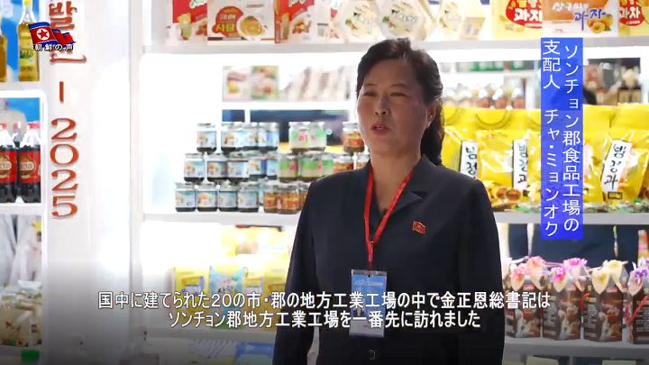 「国中に建てられた20の市・郡の地方工業工場の中で金正恩総書記はソンチョン郡地方工業工場を一番先に訪れました。昔からソンチョン郡の3大特産と知られたソンチョン甘栗のジャムと甘露煮、栄養汁を出品しましたが、とても人気です」