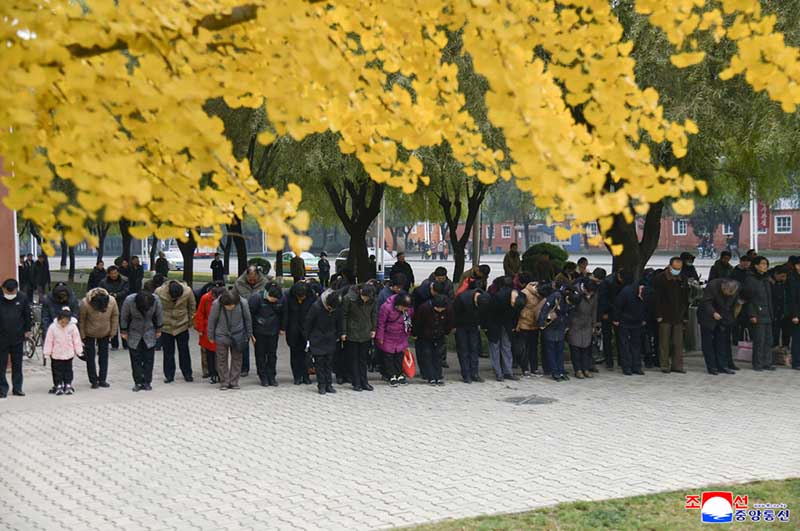 一生を党と祖国と人民のために、チュチェの革命偉業の勝利的前進のために献身的に奉仕し、社会主義のわが国家の尊威をとどろかす栄誉ある使命の遂行に奮闘してきた故キム・ヨンナム氏と告別する悲しみを抱いて、数多くの首都市民がシンミ里愛国烈士陵に向かった沿道で霊柩車に弔意を表した。