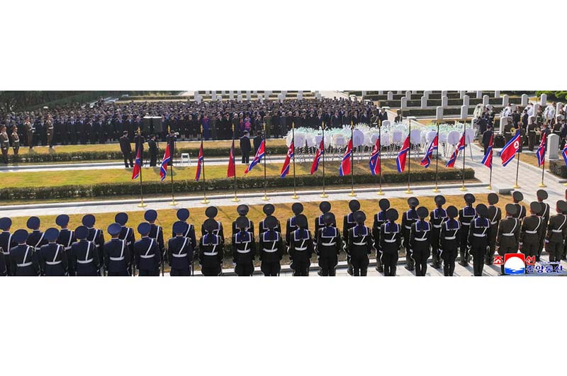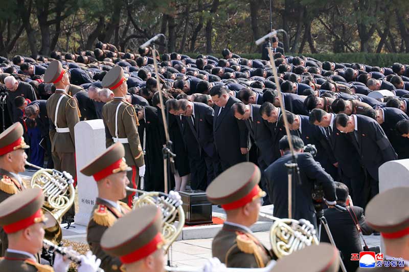 金正恩総書記は、愛国烈士陵の追悼碑の前で革命勝利への鉄石の信念と熱烈な愛国心を抱いて英雄的生を輝かせた全ての愛国烈士に敬意を表した。