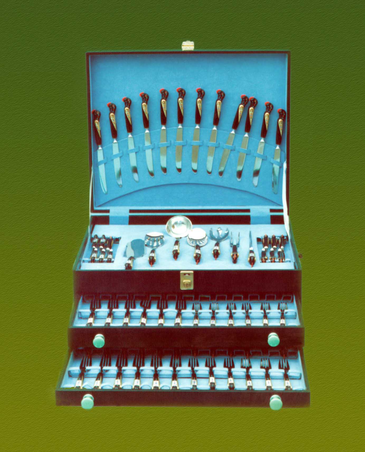 偉大な金日成主席にチュチェ75(1986)年8月23日、レバノン共産党中央委員会から贈られた食事道具セットです。