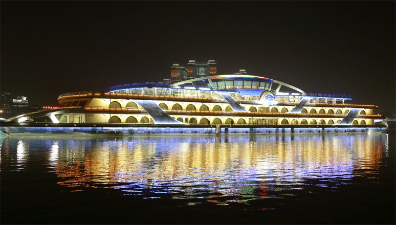 金正恩委員長は人民が楽しく、ユニークな遊覧の一時を過ごすようになったのがあまりにも嬉しくて、美しいテドン川の夜景から目を離せず、長い時間をかけて、「ムジゲ」号の運営準備を具体的に把握しました。喜びと幸せに満ちて風光明媚なテドン川を遊覧する人民の姿はこうして生まれたのです。