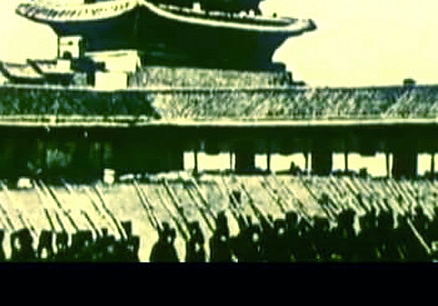 日本王の特使としてソウルに来た伊藤博文は作成済みの犯罪計画に従って、ソウルの街という街に重武装した侵略軍を配備し、皇宮を2重、3重に包囲しました。そして、侵略軍を率いて宮城にまで入り、朝鮮の皇帝コジョンに「条約」の締結を迫りました。