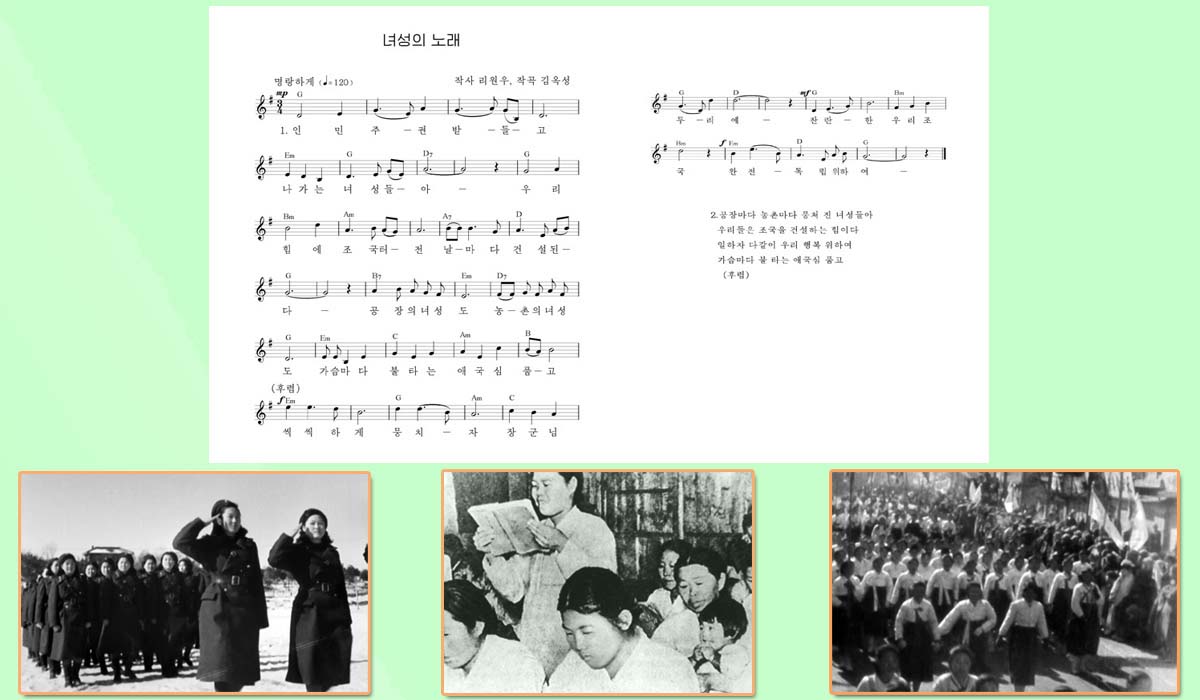 朝鮮の婦人たちを愛国の一路へ積極的に呼び起こしたこの歌は、今も力強く響き渡っています。