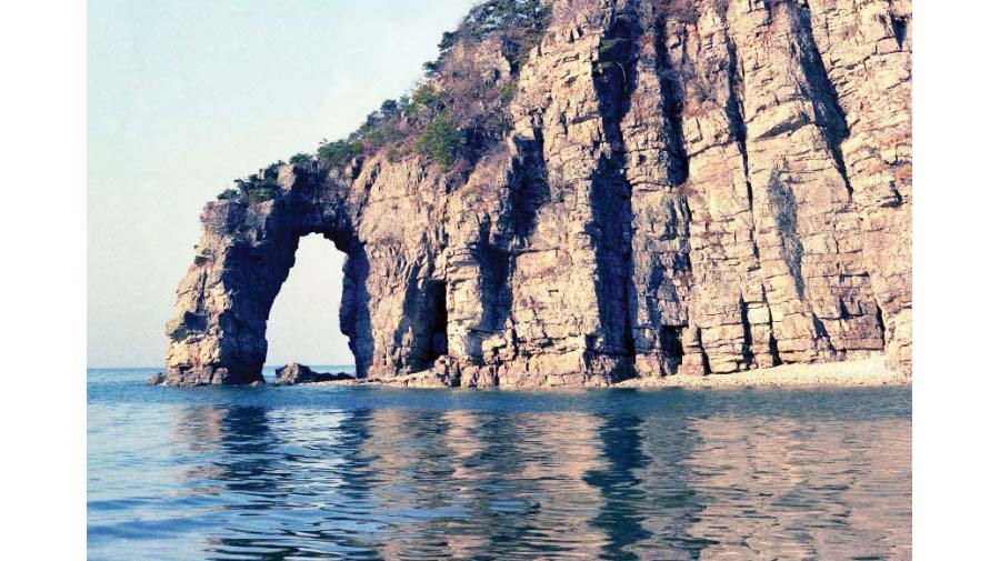 オチャ岩は、珪岩が海食と風化作用によりできた珍しい岩として、学術上の意義が大きいことから、チュチェ69(1980)年2月、天然記念物第141号に指定されています。
