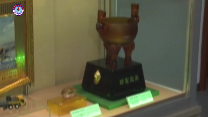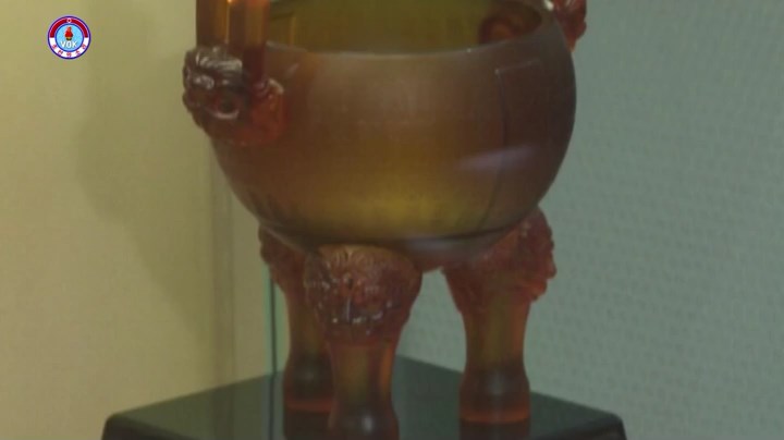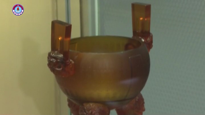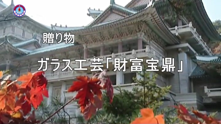 ガラス工芸「財富宝鼎*1」はチュチェ101年(2012)2月14日、敬愛する最高指導者金正恩委員長に中国河北省唐山市のめいしょうかん*2食品会社のかけんき*2理事長から贈られた物です。