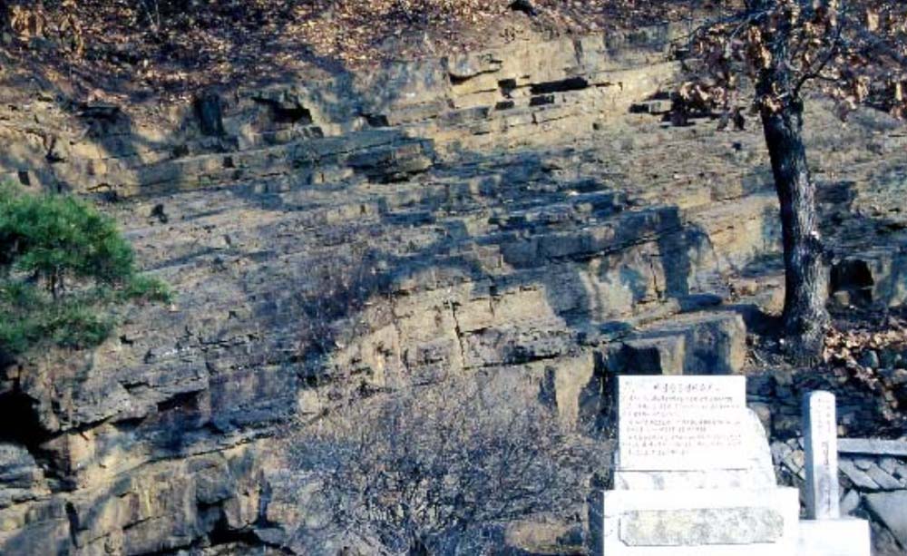 テソン山の中生代化石はピョンヤンのテソン山*1公園の入り口の左側の山の斜面にあります。1950年代中ごろ、この地域の地質調査の過程に発掘されました。化石層の厚さは2メートル、長さは100メートル以上です。