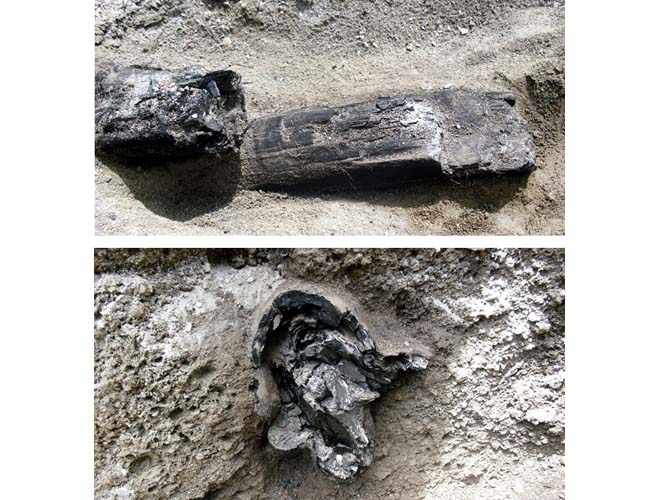 ペクトゥ山地域で見られる埋没木はこの一帯に育っていた木々が噴火の際に生じる軽石に埋もれ、枯れてしまったものです。これらの埋没木は軽石の噴出年代を決める上で意義の大きいものです。
