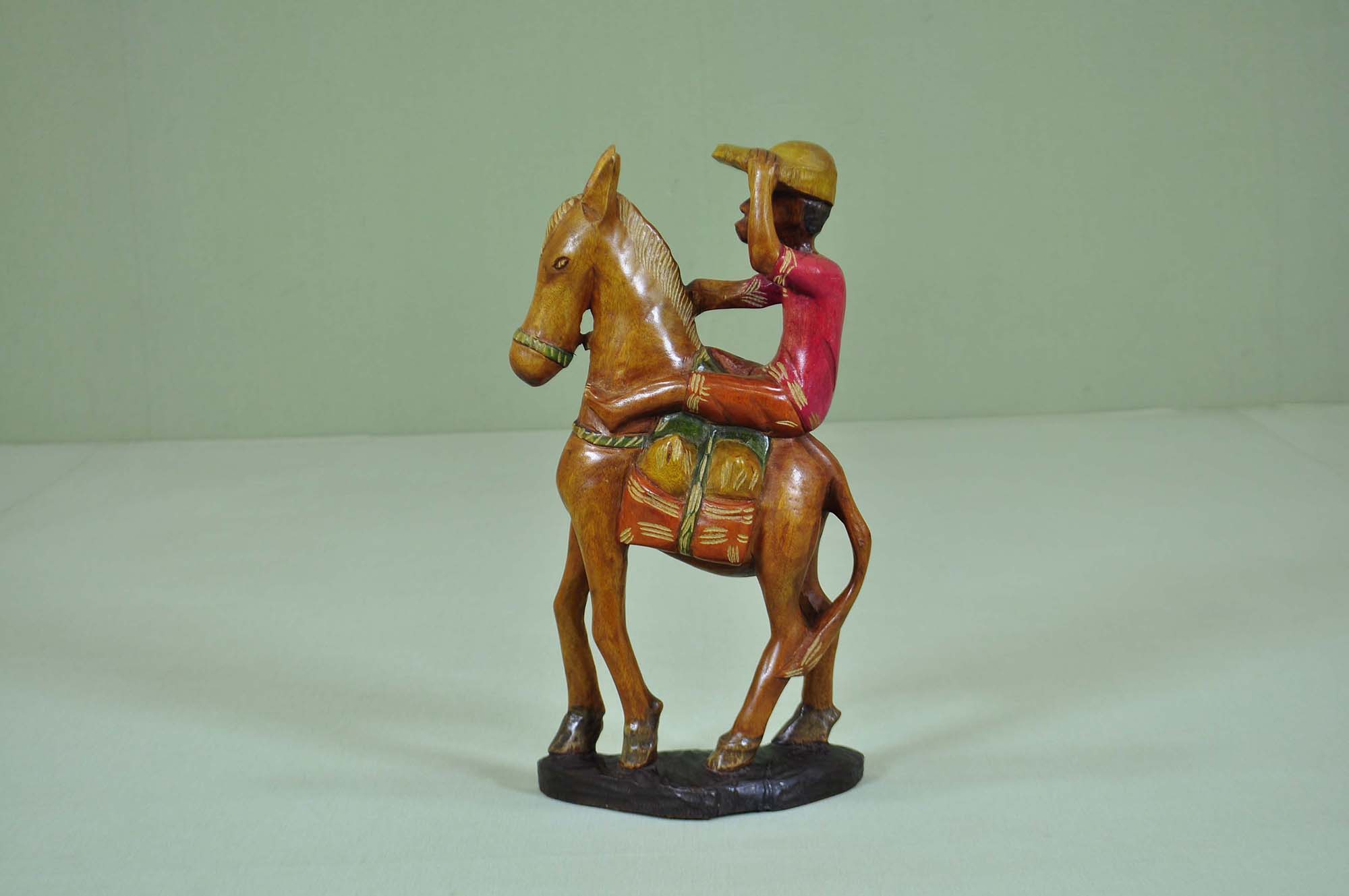 贈り物は、力と権力のシンボルである馬に乗って、未来目指して進む勤勉な農民を象ったマホガニーの彫刻です。