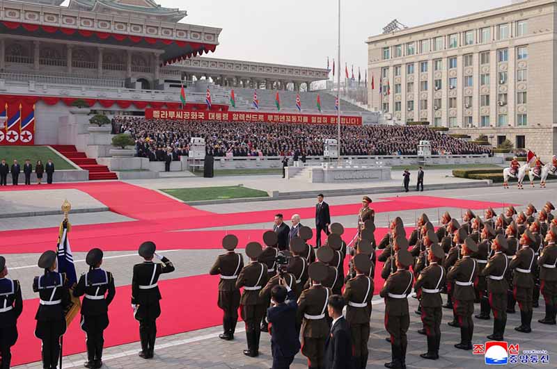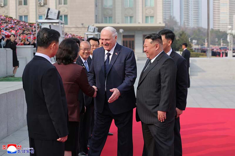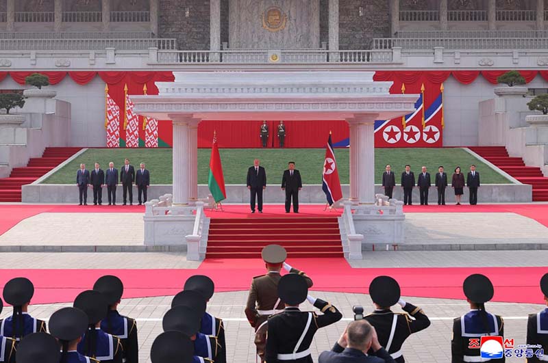 朝鮮民主主義人民共和国の金正恩国務委員長の招きによって朝鮮を公式訪問するベラルーシ共和国のアレクサンドル・ルカシェンコ大統領を歓迎する儀式が3月25日、金日成広場で行われた。
