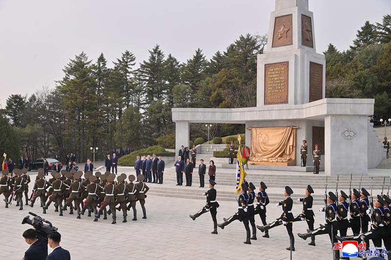 金正恩国務委員長とアレクサンドル・ルカシェンコ大統領は、朝鮮の解放のための聖戦で尊い生命をささげたソ連軍烈士を追悼して黙とうした。