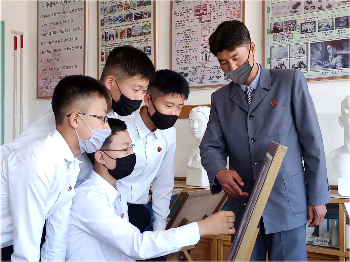 「先ずは教員の資質を高めるのが基本で、その教員の資質によって生徒たちの実力が上がるのだと思います。これからも優れた素質と才能を持つ生徒たちをより多く探し出して、未来の栄える朝鮮に役立つ有能な美術家を育てるつもりです」
